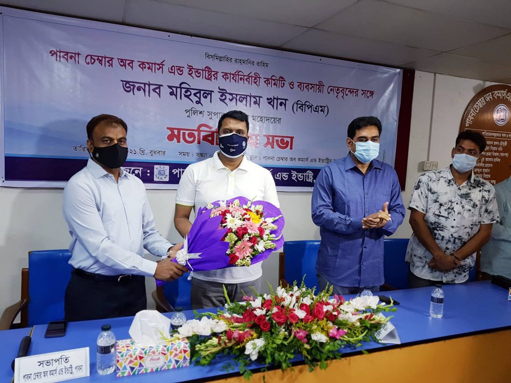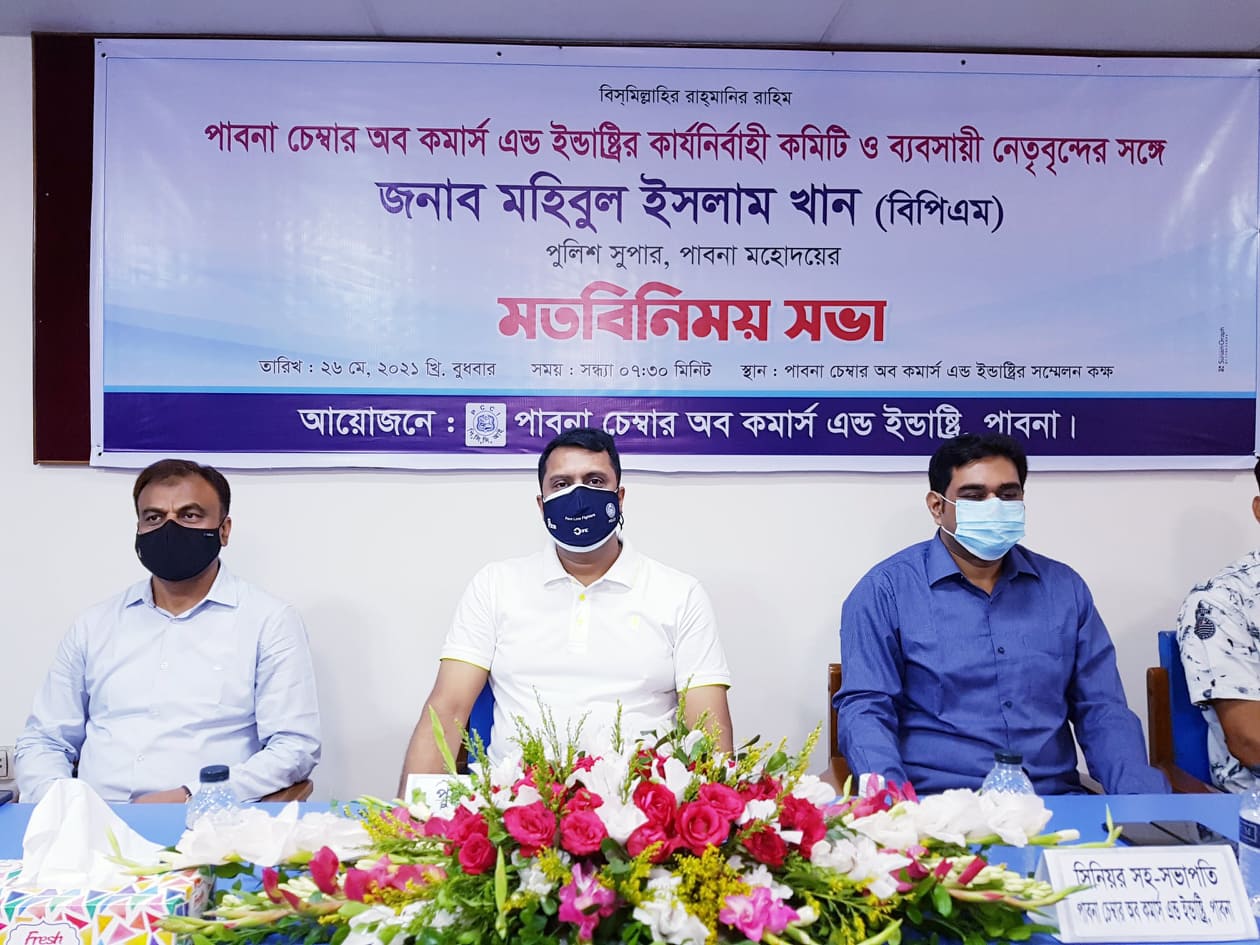 পাবনা চেম্বারের সভাপতি সাইফুল আলম স্বপন চৌধুরীর সভাপতিত্বে এবং প্রেস ক্লাবের সভাপতি এ বি এম ফজলুর রহমান এর পরিচালনায় প্রধান অতিথি হিসেবে বক্তব্য রাখেন পুলিশ সুপার মোহাম্মদ মহিবুল ইসলাম খান বিপিএম । অনুষ্ঠানে বক্তব্য রাখেন চেম্বারের সিনিয়র সহ সভাপতি আলী মর্তুজা বিশ্বাস সনি, অতিরিক্ত পুলিশ সুপার স্নিগ্ধ আক্তার,