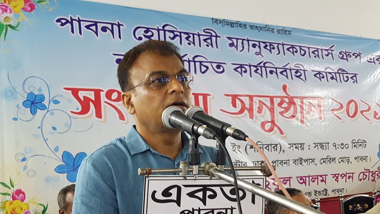 এস এম আলম, ১২ জুন : পাবনা হোসিয়ারি ম্যানুফ্যাকচারার্স গ্রুপের নব নির্বাচিত কমিটির দায়িত্ব হস্তান্তর শনিবার অনুষ্ঠিত হয়। এ উপলক্ষে পাবনার নুরজাহান কমিউনিটি সেন্টারে এক অনুষ্ঠান অনুষ্ঠিত হয়। হোসিয়ারি ম্যানুফ্যাকচারার্স কমিটির প্রধান সমন্বয়কারী ও পাবনা চেম্বারের সভাপতি সাইফুল আলম স্বপন চৌধুরীর সভাপতিত্বে অনুষ্ঠানে বক্তব্য রাখেন পাবনা প্রেসক্লাব সভাপতি এবিএম ফজলুর রহমান, পাবনা চেম্বারের পরিচালক মাসুদুর রহমান মিন্টু, আলহাজ্জ¦ শফিকুল ইসলাম খান, জাহাঙ্গীর হোসেন, আবুল হোসেন রিপন, প্রধান নির্বাচন কমিশনার অ্যাডভোকেট শাহ আলম, জেলা আইনজীবী সমিতির সাবেক সভাপতি আমিনুল ইসলাম পটল প্রমুখ। গত ২৯ মে হোসিয়ারি ম্যানুফ্যাকচারার্স গ্রুপের নির্বাচনে মনির হোসেন পপি সভাপতি, মকলেছুর রহমান জিতু সিনিয়র সহ-সভাপতি, আবদুল আজিজ জুনিয়র সহ-সভাপতি নির্বাচিত হয়েছিলেন। অনুষ্ঠানে হোসিয়ারি ম্যানুফ্যাকচার্স কমিটির প্রধান সমন্বয়কারী ও পাবনা চেম্বারের সভাপতি সাইফুল আলম স্বপন চৌধুরী তাদের দায়িত্ব হস্তান্তর করেন।