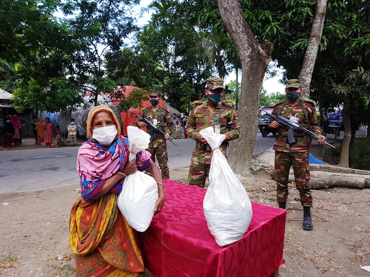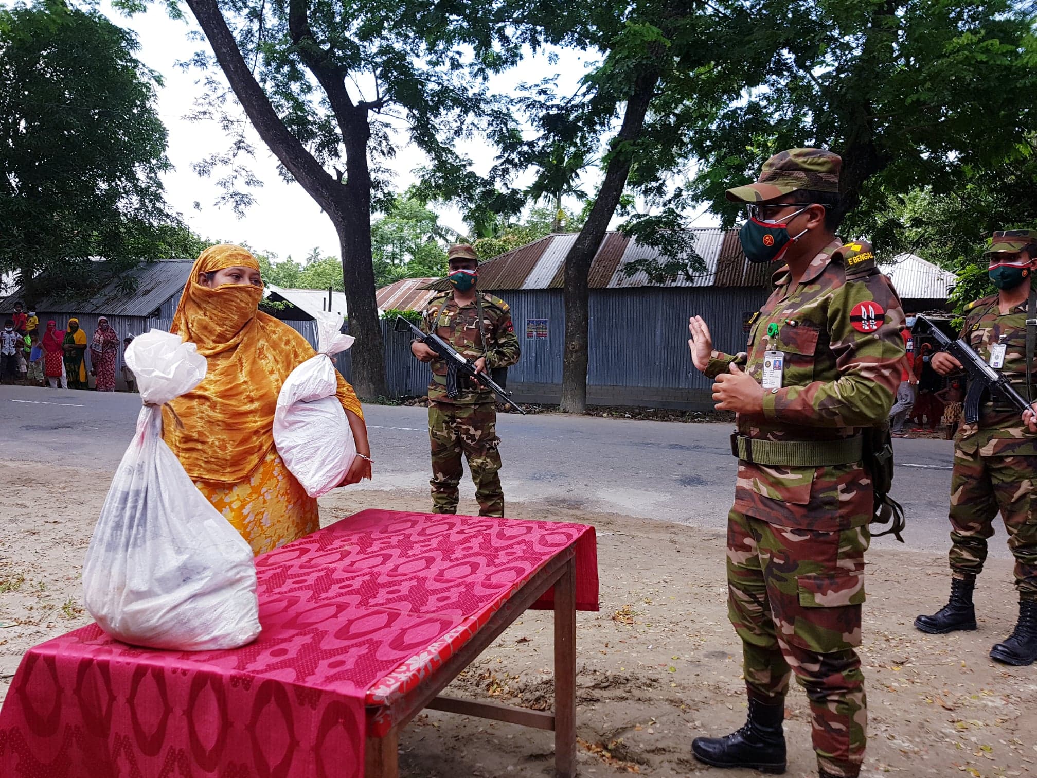 এস এম আলম, ১২ জুলাই : লকডাউন পরিস্থিতিতে পাবনায় তৃনমূল পর্যায়ে করোনাকালীন সচেতনতা সৃষ্টি এবং অসহায়- দুঃস্থ মানুষদের ত্রাণ ও খাদ্য সামগ্রী বিতরন করেছে বাংলাদেশ সেনাবাহিনী। সকালে পাবনা সদর এবং ঈশ্বরদী উপজেলায় বাংলাদেশ সেনাবাহিনীর ১১ পদাতিক ডিভিশন ও বগুড়া এরিয়ার ১১ আর্টিলারি ব্রিগেডের তত্বাবধানে এ কার্যক্রমের সার্বিক পরিচালনায় ছিলেন বগুড়া ক্যান্টনমেন্টের টহল অধিনায়ক ক্যাপ্টেন আকিব আহমেদ। এ কার্যক্রমের আওতায় দিনব্যাপী দুই শতাধিক অসহায় মানুষকে এ সেবা দেয়া হয়।