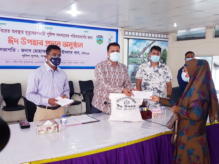 এস এম আলম, ১৭ জুলাই : পাবনায় বিভিন্ন সময়ে কর্তব্যরত অবস্থায় মৃত্যুবরনকারী শতাধিক পুলিশ সদস্যের পরিবারের মাধ্যে ঈদ উপহার সামগ্রী ও অনুদান দেয়া হয়েছে।সকালে পুলিশ লাইনসের শহীদ বীর মক্তিযোদ্ধা এএসআই আব্দুল জলিল মিলনায়তনে আনুষ্ঠানিকভাবে এসব সামগ্রী হস্তান্তর করেন পুলিশ সুপার মো: মহিবুবুল ইসলাম খান বিপিএম।এসময় উপস্থিত ছিলেন, অতিরিক্ত পুলিশ সুপার স্নিগ্ধ আখতার পিপিএম, অতিরিক্ত পুলিশ সুপার মাসুদ আলম, অতিরিক্ত পুলিশ সুপার রোকনুজ্জামান সরকার, অতিরিক্ত পুলিশ সুপার শেখ মো: জিন্নাহ আল মামুন, সহকারী পুলিশ সুপার শরিফুল ইসলাম, প্রেসক্লাবের সভাপতি এবিএম ফজলুর রহমান, প্রেসক্লাবের সাবেক সাধারণ সম্পাদক আখিনুর ইসলাম রিমন, বাংলা টিভির জেলা প্রতিনিধি ও অনলাইন ’নতুন চোখ’ পত্রিকার প্রকাশক এস এম আলম সহ সাংবাদিকবৃন্দ। অনুষ্ঠান সঞ্চালনা করেন এএসপি রিজওয়ান সাঈদ।