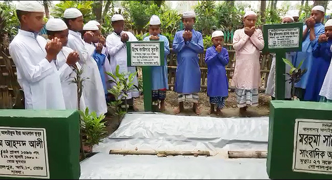 এস এম আলম ,১৯ জুলাই,পাবনা : বিশিষ্ট সাংবাদিক এস এম আলমের পিতা আহম্মদ আলীর ৩২ তম মৃত্যুবার্ষিকীতে তার নিজ বাসভবনে কুরআন খতম ও মিলাদ এবং দোয়া মাহফিল অনুষ্ঠিত হয়। দোয়া পরিচালনা করেন আরিফপুর সদর গোরস্থানের হাফিজিয়া মাদ্রাসার কারি মওলানা গোলাম রব্বানি, বাংলা টিভি জেলা প্রতিনিধি ও অনলাইন ’নতুন চোখ’ পত্রিকার প্রকাশক এস এম আলম। সকালে পাবনা আরিফপুর সদর গোরস্থানে মরহুম এর কবর জিয়ারত করা হয়। দোয়া মাহফিলে অংশ নেন আরিফপুর সদর গোরস্থানের ইমাম হাফেজ মওলানা (মুক্তি) ফরিদুল ইসলাম।