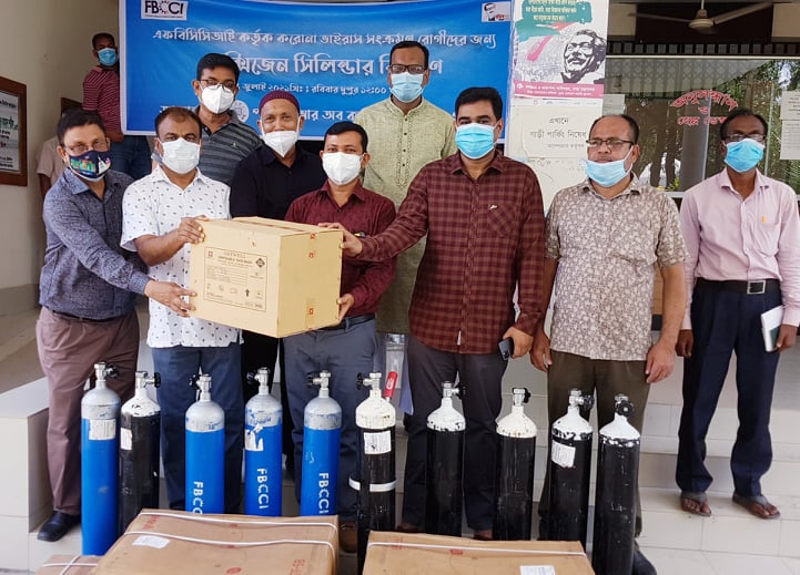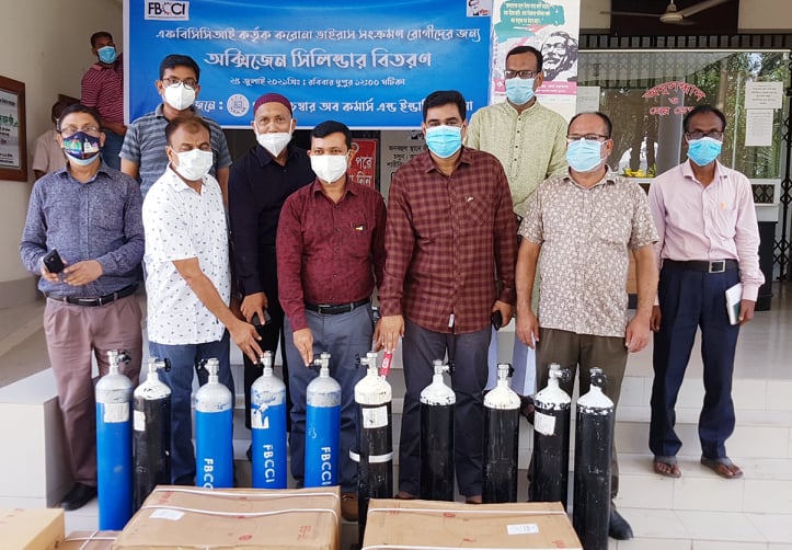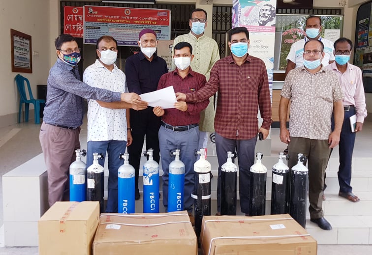এস এম আলম, ২৫ জুলাই : ‘করোনা সংক্রমণ রোধে স্বাস্থ্যবিধি মেনে চলি, সবাই মিলে করোনাকে প্রতিরোধ করি, করোনাকে না বলি, জীবনকে হ্যাঁ বলি’ এই শ্লোগান সামনে রেখে পাবনায় এফবিসিসিআই এর পক্ষ থেকে স্বাস্থ্য পাবনা সিভিল সার্জনকে ১০টি অক্সিজেন সিলিন্ডারসহ বিপুল পরিমান স্বাস্থ্য সুরক্ষা ও চিকিৎসাসামগ্রী হস্তান্তর করেছে পাবনা চেম্বার অব কমার্স নেতৃবৃন্দ। দুপুরে পাবনা চেম্বার অব কমার্স এন্ড ইন্ডাষ্ট্রি সভাপতি মো. সাইফুল আলম আলম স্বপন চৌধুরী, সিনিয়র সহসভাপতি মো. আলী মর্তুজা বিশ্বাস সনি, পাবনার সিভিল সার্জন ডা. মনিসর চৌধুরীর কাছে এ সব স্বাস্থ্য সামগ্রী হস্তান্তর করেন।পাবনা চেম্বারের পরিচালক ও পাবনা প্রেসক্লাব সভাপতি এবিএম ফজলুর রহমান, চেম্বারের পরিচালক এইএচএম রেজুয়ান জুয়েল,পরিচালক সাজ্জাদ হোসেন বাচ্চু, পরিচালক আলহাজ্জ্ব শফিকুল ইসলাম খান, পরিচালক মো. মাসুদুর রহমান মিন্টু, অনলাইন পত্রিকা ’নতুন চোখ’- এর প্রকাশক ও ’বাংলা টিভি’-র জেলা প্রতিনিধি এস এম আলম, চেম্বারের সচিব আব্দুর রাজ্জাকসহ বিভিন্ন বাজার বণিক সমিতির কর্মকর্তারা উপস্থিত ছিলেন।পাবনা চেম্বার অব কমার্স এন্ড ইন্ডাষ্ট্রি সভাপতি মো. সাইফুল আলম আলম স্বপন চৌধুরী জানান, এফবিসিসিআই এর অনুযায়ী সারাদেশে জনবহুল স্থানে অক্সিজেন সিলিন্ডারসহ স্বাস্থ্য সুরক্ষাসামগ্রী এবং বিভিন্ন হাসপাতালে চিকিৎসা সামগ্রী বিতরণ শুরু হয়েছে। জেলার সব উপজেলায় এই কার্যক্রম অব্যাহত থাকবে।