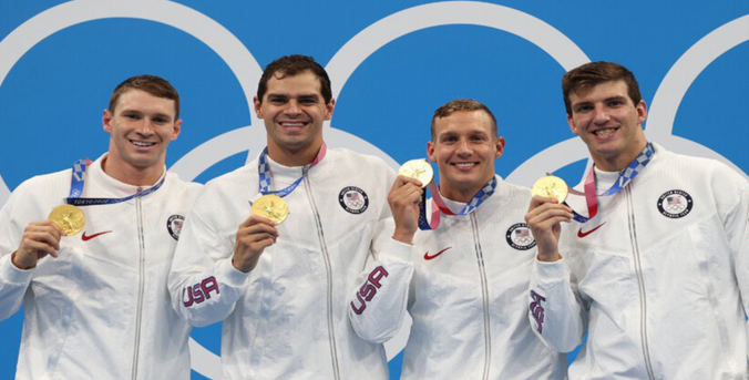 সাঁতারের ৪*১০০ মিটার মিডলে রিলেতে অলিম্পিক রেকর্ড ও বিশ্ব রেকর্ড- দুটিই ছিল যুক্তরাষ্ট্রের দখলে। রোববার এ দুটি রেকর্ড নতুন করে লিখল যুক্তরাষ্ট্রের সাঁতারু দল।টোকিও অলিম্পিকের একুয়াটিক সেন্টারে রোববার সকালে ৩ মিনিট ২৬.৭৮ সেকেন্ডে ৪*১০০ মিটার মিডলে রিলে শেষ করেছেন যুক্তরাষ্ট্রের রায়ান মার্ফি, মাইকেল অ্যান্ড্রু, কেলেব ড্রেসেল ও জাচ অ্যাপল।