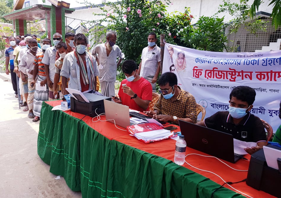 এস এম আলম, ১১ আগষ্ট : করোনা চিকিৎসা এবং মহামারী প্রতিরোধে পাবনায় স্কয়ার গ্রুপের সহায়তায় যুবলীগের উদ্যোগে মুমুর্ষ রোগীদের অক্সিজেন সরবরাহের পাশাপাশি চলছে বিনামুল্যে টিকা রেজিস্ট্রেশন কার্যক্রম। জেলা যুবলীগের আহবায়ক আলী মর্তুজা বিশ্বাস সনি এবং যুগ্ম আহবায়ক শিবলী সাদিকের তত্বাবধায়নে আজ দুপুর থেকে পৌর এলাকার আরিফপুরে শুরু হয়েছে ৬ নম্বর ওয়ার্ডের টিকা নিবন্ধন কার্যক্রম। সংগঠনের সেচ্ছাসেবকরা করোনা টিকা রেজিষ্ট্রেশনের পাশপাশি টিকা কার্ড হস্তান্তর করে।যুবলীগ নেতৃবৃন্দ জানান, এ কার্যক্রমের আওতায় এ পর্যন্ত ৫ হাজার পৌরবাসীর টিকা নিবন্ধনের পাশপাশি তিন হাজার করোনা আক্রান্ত রোগীকে অক্সিজেন সরবরাহ করা হয়েছে।