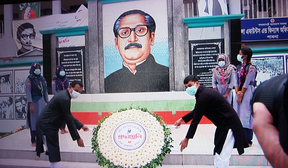 পাবনায় জাতির জনক বঙ্গবন্ধু শেখ মুজিবুর রহমানের ৪৬তম শাহাদৎ বার্ষিকী ও জাতীয় শোক দিবস উপলক্ষে বঙ্গবন্ধু শেখ মুজিবুর রহমানের প্রতিকৃতিতে জেলা প্রশাসনের শ্রদ্ধাঞ্জলি