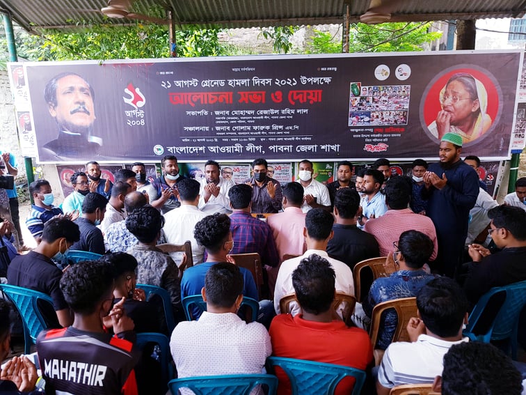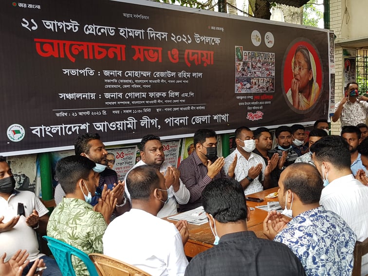 এস এম আলম, ২৪ আগষ্ট : ২১শে আগষ্ট বর্বরোচিত গ্রেনেড হামলার শিকার প্রায়ত রাষ্ট্রপতি জিল্লুর রহমানের সহধর্মিনী আওয়ামীলীগ নেত্রী আইভি রহমানের ১৭ তম শাহাদৎ বার্ষিকী পালন করেছে জেলা আওয়ামী যুবলীগ।এ উপলক্ষে দুপরে জেলা আওয়ামীলীগ কার্যালয়ে আইভি রহমানের প্রতিকৃতিতে ফুল দিয়ে শ্রদ্ধা নিবেদন এবং তাঁর আত্মার মাগফিরাত কামনা করে অনুষ্ঠিত হয় দোয়া মাহফিল। এসময় উপস্থিত ছিলেন জেলা আওয়ামী যুবলীগের আহবায়ক আলী মর্তুজা বিশ্বাস সনি, যুগ্ম আহবায়ক শিবলী সাদিক ও যুগ্ম আহবায়ক শাকিরুল ইসলাম রনি সহ স্থানীয় নেতৃবৃন্দ।