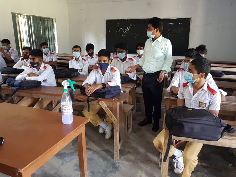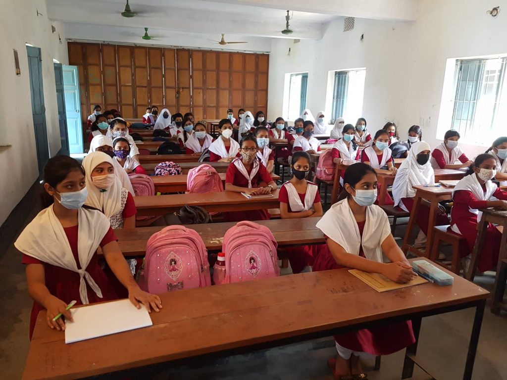 এস এম আলম, ১২ সেপ্টেম্বরঃ করোনা মহামারির কারনে প্রায় দেড় বছর পর স্কুল খোলার প্রথম দিনে পাবনার প্রথম সারির বেশ কয়েকটি স্কুল উপস্থিতির হার কম থাকলেও স্বাস্থ্য বিধি মেনেই চলছে ক্লাশ। সকালে জেলা স্কুল, সরকারি বালিকা উচ্চ বিদ্যালয় ও পুলিশ লাইনস স্কুল এন্ড কলেজ ঘুরে দেখা যায় শ্রেনী কক্ষে একটি ব্রেঞ্চে দুই থেকে তিনজন শিক্ষার্থী মাস্ক পড়ে ক্লাশ করছে। স্যনিটাইজারে হাত ধুয়ে ঢুকছে স্কুলে। দীর্ঘ সময় পরে স্কুলে আসতে পেরে বেশ আনন্দিত শিক্ষার্থীরা। স্কুল কর্তৃপক্ষ জানান সরকারী গাইড লাইন মেনেই তৈরি করা হয়েছে প্রতিটি শ্রেনীর রুটিন।