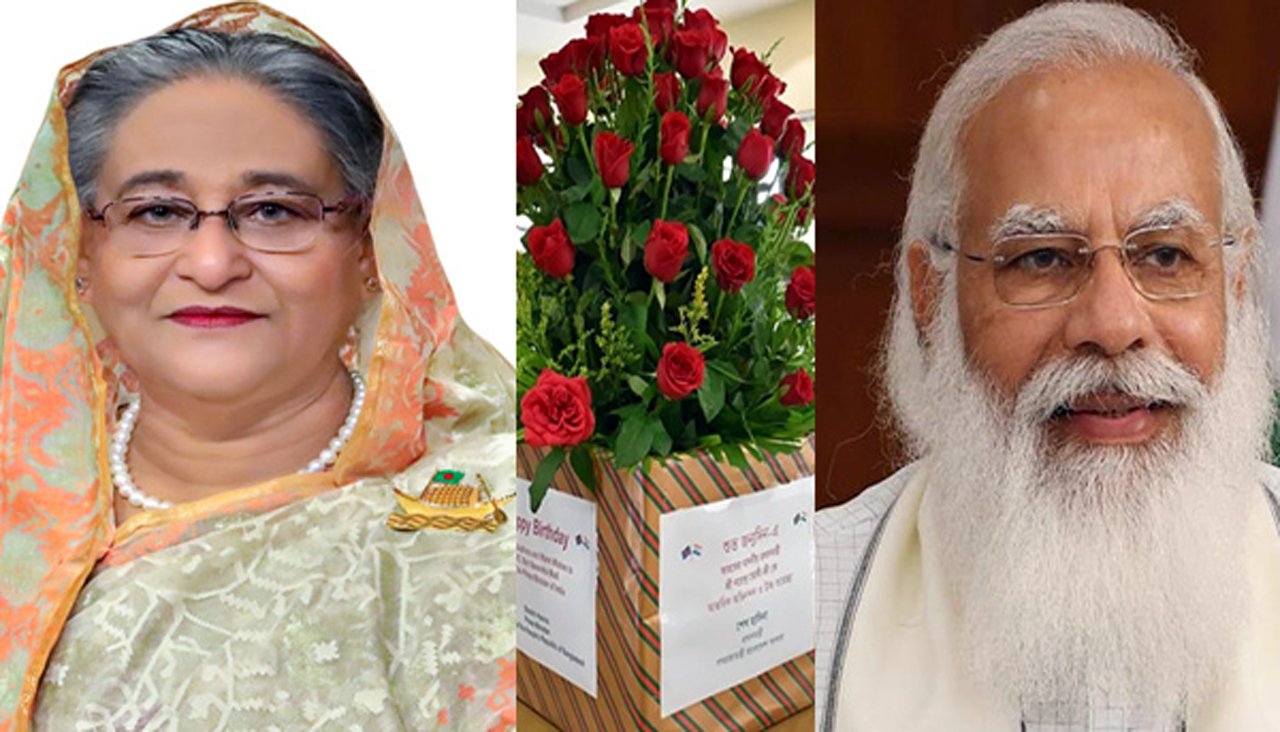 ভারতের প্রধানমন্ত্রী নরেন্দ্র মোদির ৭১তম জন্মদিন উপলক্ষে ৭১টি লাল গোলাপ পাঠিয়ে অভিনন্দন ও শুভেচ্ছা জানিয়েছেন বাংলাদেশের প্রধানমন্ত্রী শেখ হাসিনা।শুক্রবার সকালে শেখ হাসিনার পক্ষ থেকে ভারতের প্রধানমন্ত্রীর দফতরে গোলাপ ফুলের তোড়া পাঠায় নয়াদিল্লিস্থ বাংলাদেশ হাইকমিশন।