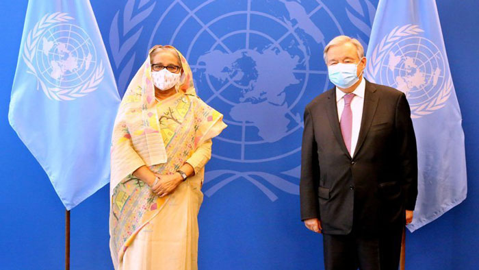 পরে পররাষ্ট্রমন্ত্রী ড. এ কে আব্দুল মোমেন প্রধানমন্ত্রীর সার্বিক কার্যক্রমের ব্যাপারে সাংবাদিকদের ব্রিফিং করেন। বৈঠকের শুরুতে প্রধানমন্ত্রী শেখ হাসিনা জাতিসংঘ মহাসচিব অ্যান্তোনিও গুতেরেসকে স্বাগত জানান।জাতিসংঘ বাংলাদেশের অগ্রাধিকারগুলোকে গুরুত্ব দেয় উল্লেখ করে মহাসচিব প্রধানমন্ত্রীকে বলেন, জলবায়ু পরিবর্তন ও টেকসই উন্নয়নের লক্ষ্যমাত্রা অর্জনের মতো বাংলাদেশের অগ্রাধিকারগুলো জাতিসংঘেরও অগ্রাধিকার।