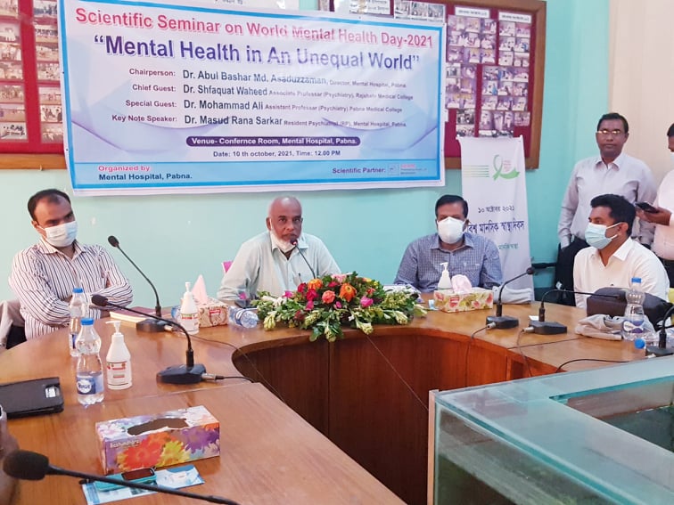 এস এম আলম, ১০ অক্টোবর : বিশ্ব প্রত্যক্ষ ও পরোক্ষভাবে মানসিক রোগে ভুগছে প্রায় একশ ১০ কোটি মানুষ। দুপুরে অসম বিশ্বে মানসিক স্বাস্থ্য” এ প্রতিপাদ্যে বিশ্ব মানসিক স্বাস্থ্য দিবস উপলক্ষে স্কয়ার ফার্মার সৌজন্যে পাবনা মানসিক হাসপাতালের উদ্যোগে আয়োজিত এক সাইন্টিফিক সেমিনারে এ তথ্য জানান মনোরোগ বিশেষজ্ঞরা। হাসপাতালের সম্মেলন কক্ষে হাসপাতালের পরিচালক প্রফেসর ডা. আবুল বাশার মো:আসাদুজ্জামানের সভাপতিত্বে অনুষ্ঠিত এ সেমিনারে প্রধান অতিথির বক্তব্য দেন রাজশাহী মেডিক্যাল কলেজের মনোরোগ বিভাগের সহযোগী অধ্যাপক ডা, সাফাকাত ওয়াহিদ, বিশেষ অতিথি ছিলেন পাবনা মেডিক্যাল কলেজের মনরোগ বিভাগের সহকারী অধ্যাপক মোহাম্মদ আলী। মুল প্রবন্ধ পাঠ করেন মানসিক হাসপাতালের আবাসিক চিকিৎসক ডা. মাসুদ রানা সরকার। আরও উপস্থিত ছিলেন রাজশাহী স্কয়ার ফার্মাসিউটিক্যালসের আরএসএম ইদ্রিস আলী। সেমিনারে মনরোগ বিশেষজ্ঞরা অপ্রতুল লোকবল, অবকাঠামো এবং চিকিৎসা সরঞ্জামের সংকটই দেশে মানসিক চিকিৎসার মুল চ্যালেঞ্জ বলে মনে করেন। এর আগে সকালে হাসপাতাল চত্বর থেকে বের হয় এক বিশাল বর্ণাঢ্য র্যালী।