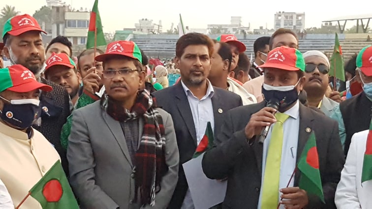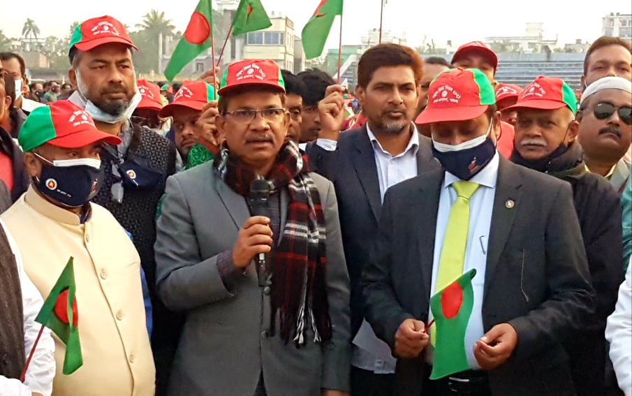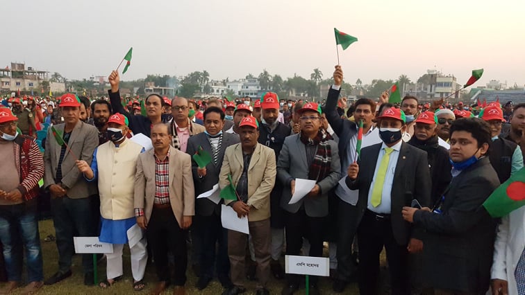 এস এম আলম, ১৬ ডিসেম্বর : মুজিব জন্ম শতবর্ষ এবং স্বাধীনতার সূবর্ণ জয়ন্তী উপলক্ষে পাবনার শহীদ আমিন উদ্দিন স্টেডিয়ামে প্রধানমন্ত্রীর সাথে অনলাইনে যুক্ত হয়ে শপথ বাক্য পাঠ করেছেন জেলা প্রশাসন ও পুলিশসহ সকল সরকারী বেসরকারী দপ্তরের পেশাজীবি, স্কুল কলেজ ও বিশ্ববিদ্যালয়ের শিক্ষক ও শিক্ষার্থী, সাংবাদিক জনপ্রতিনিধিসহ বিভিন্ন রাজনৈতিক, সামাজিক ও সাংস্কৃতিক সংগঠনের নেতৃবৃন্দ।