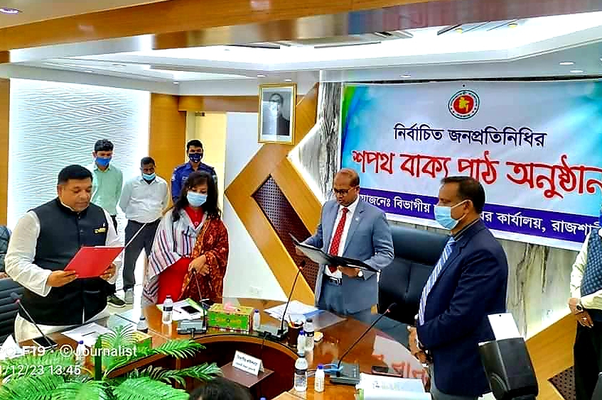 রাজশাহী বিভাগীয় কমিশনারের কার্যালয়ে বেড়া পৌরসভার নব নির্বাচিত জনপ্রতিনিধির শপথবাক্য পাঠ অনুষ্ঠান