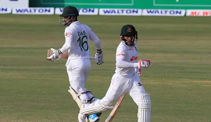 মিরপুর শেরে বাংলা ক্রিকেট স্টেডিয়ামে দ্বিতীয় টেস্টের প্রথম দিন চা পানের বিরতি পর্যন্ত ৫৩ ওভারে বাংলাদেশের সংগ্রহ ৫ উইকেটে ১৫৩ রান। ষষ্ঠ উইকেট জুটির সংগ্রহ দাঁড়িয়েছে ১২৯ রান। এ নিয়ে চতুর্থবারের মতো টেস্টে শতরানের জুটি গড়লেন মুশফিক ও লিটন। চট্টগ্রামে সিরিজের প্রথম ম্যাচেও এ দুজনের ছিলো ১৬৫ রানের জুটি।দুই লঙ্কান পেসার কাসুন রাজিথা ও আসিথা ফার্নান্দোর তোপে ইনিংসের সপ্তম ওভারের মধ্যে সাজঘরে ফিরে গিয়েছিলেন বাংলাদেশের প্রথম পাঁচ ব্যাটার। ইনিংসের দ্বিতীয় বলেই সাজঘরের পথ ধরেন মাহমুদুল হাসান জয়। মাত্র পাঁচ টেস্টের ক্যারিয়ারে জয়ের এটি চতুর্থ ডাক।