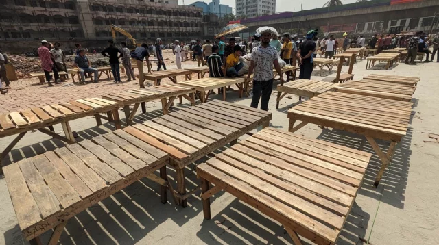 বঙ্গবাজারে চৌকি বসিয়ে বেচাকেনা শুরু করেছেন অগ্নিকাণ্ডে ক্ষতিগ্রস্ত ব্যবসায়ীরা। তাদের ব্যবসা পরিচালনায় অস্থায়ীভাবে চৌকি নিয়ে বসার সুযোগ করে দিয়েছে ঢাকা দক্ষিণ সিটি করপোরেশন (ডিএসসিসি)।বুধবার দুুুুপুরে ডিএসসিসি মেয়র শেখ ফজলে নূর তাপস এ কার্যক্রমের উদ্বোধন করেন।