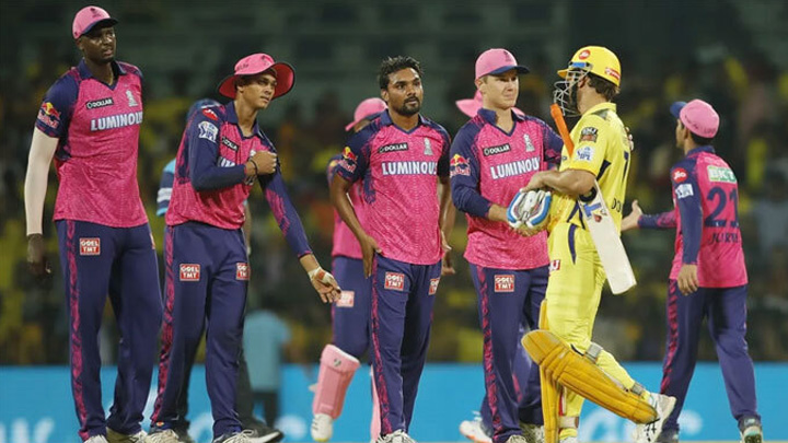 শেষ ওভারে জয়ের জন্য প্রয়োজন ছিল ২১ রান। প্রথম দুই বলই ওয়াইড করে ফেলেন বোলার সন্দিপ শর্মা। প্রথম বৈধ বলটিতে কোনো রান নিতে পারেনি চেন্নাই। পরের দুই বলে টানা দুটি ছক্কা মেরে দেন ধোনি। পরের তিন বলে আর বড় কোনো শট খেলতে পারেননি ধোনি এবং জাদেজা- দু’জনের কেউই। বুদ্ধিদীপ্ত বোলিংয়ে তিন বলে মাত্র ৩ রান দিয়েছেন শর্মা। তাতেই ৩ রানের পরাজয় ঘটে চেন্নাইয়ের।৪ ম্যাচের ৩টি জিতে ৬ পয়েন্ট নিয়ে টেবিলে শীর্ষে উঠে গেছে রাজস্থান। লখনৌ সুপার জায়ান্টসের পয়েন্টও ৬। তবে তারা পিছিয়ে রানরেটের ব্যবধানে। তিন নম্বরে কেকেআর এবং চার নম্বরে রয়েছে গুজরাট। তাদের পয়েন্ট ৪ করে।