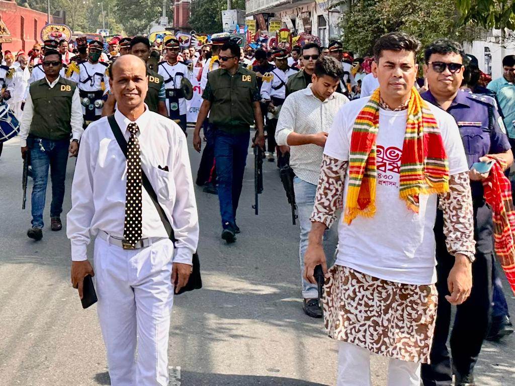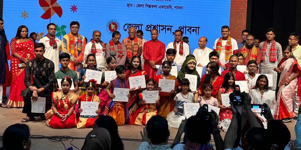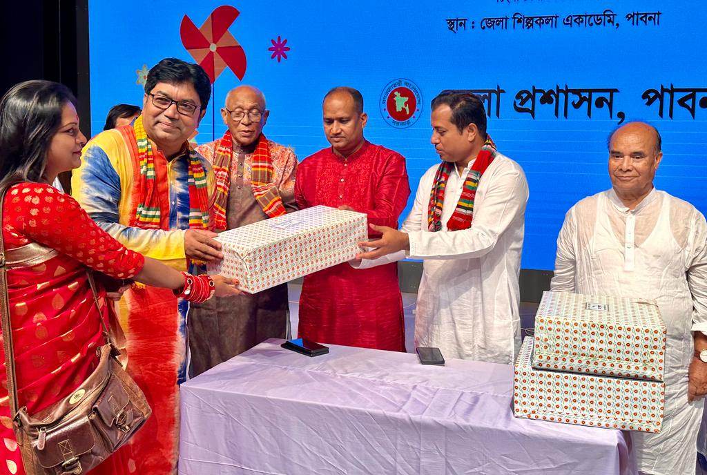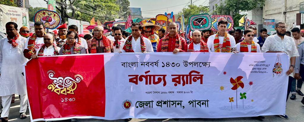 এস এম আলম, ১৪ এপ্রিল: মঙ্গল শোভাযাত্রাসহ নানা আনুষ্ঠানিকতায় উৎসবমুখোর পরিবেশে পাবনায় পালিত হয়েছে বাংলা নববর্ষ। এ উপলক্ষে সকালে জেলা প্রশাসনের উদ্যোগে বীর মুক্তিযোদ্ধা রফিকুল ইসলাম বকুল স্বাধীনতা চত্বর থেকে বের হয় এক বিশাল বর্ণাঢ্য মঙ্গল শোভাযাত্রা। নানা ব্যানার আর ফেস্টুনে সজ্জিত এ শোভা যাত্রায় আবহমান বাঙ্গালী সাংস্কৃতিক ঐতিহ্য তুলে ধরা হয়। শোভাযাত্রাটি শহরের প্রধান প্রধান সড়ক প্রদক্ষিন শেষে জেলা জেলা শিল্পকলা একাডেমী প্রাঙ্গনে গিয়ে শেষ হয়। শোভাযাত্রায় নেতৃত্ব দেন জেলা প্রশাসক বিশ্বাস রাসেল হোসেন, পুলিশ সুপার আকবর আলী মুনসী, জেলা পরিষদ চেয়ারম্যান বীর মুক্তিযোদ্ধা আ স ম আবদুর রহিম পাকন ও জেলা আওয়ামীলীগ সভাপতি রেজাউল রহিম লাল। পরে সেখানে অনুষ্ঠিত হয় লোক সঙ্গীত, লোক নৃত্য প্রতিযোগিতা ও এক মনোজ্ঞ সাংস্কৃতিক অনুষ্ঠান।