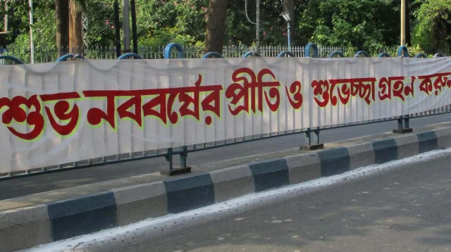 পহেলা বৈশাখের সঙ্গে জড়িয়ে রয়েছে সমগ্র বাঙালি জাতির সংস্কৃতি, ঐতিহ্য ও ইতিহাস। যদিও এবারের পহেলা বৈশাখের দিনে দাবদাহে পুড়ছে গোটা পশ্চিমবঙ্গ। তবে এই দাবদাহকে তোয়াক্কা না করে রাস্তায় নেমেছে রাজ্যেটির মানুষ। নতুন জামা-কাপড় পরে আনন্দে মেতে উঠেছে তারা।নতুন বছরকে স্বাগত জানাতে রাজ্যজুড়ে চলছে শুভেচ্ছার ঢল। কোথাও চলছে মিষ্টি মুখ, গান-বাজনা। আবার কোথাও শুরু হয় শোভাযাত্রা। নতুন বছরে পুজো দেওয়ার ভিড়ও দেখা যাচ্ছে বিভিন্ন ধর্মীয় প্রতিষ্ঠানে।