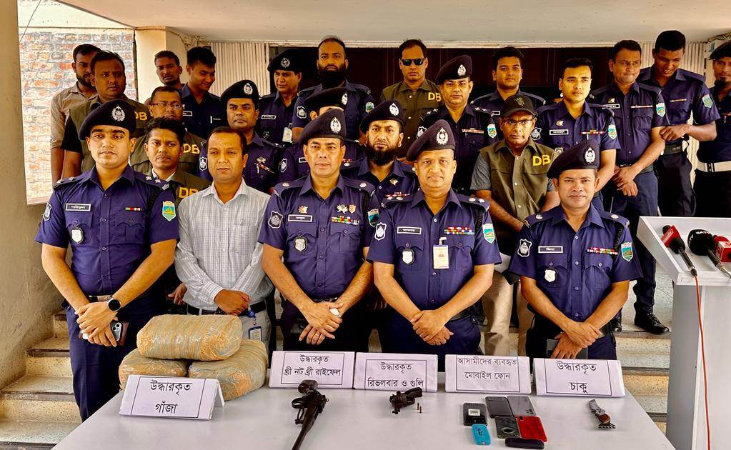 এস এম আলম, ১৮ এপ্রিল: পাবনায় পুলিশ নগদের টাকা ছিনতাইয়ে জড়িত সন্দেহে দুই নগদ কর্মী সহ ৮ ছিনতাইকারীকে গ্রেফতার করেছে। এছাড়া ৬ কেজি গাঁজাসহ দুই মাদক ব্যবসায়ীকেও গ্রেফতার করে পুলিশ। উভয় ঘটনায় একটি থ্রী নট থ্রী রাইফেল ও একটি রিভলবার উদ্ধার করা হয়। সকালে নিজ কার্যালয়ের সামনে এক সংবাদ সম্মেলনে পুলিশ সুপার আকবর আলী মুনসী জানান, গত ২৪ মার্চ পাবনার মাধপুর পুলিশ ফাড়ির সামনে থেকে ছিনতাই হয় নগদের ৫ লাখ ৭০ হাজার টাকা। পরে পুলিশ তথ্য প্রযুক্তির সহায়তায় নগদের দুই কর্মীসহ ৮ ছিনতাইকারীকে একটি রিভলবার সহ গ্রেফতার করে। উদ্ধার করেছে ছিনতাই কাজে ব্যবহ্রত দুটি মোটর সাইকেল।এদিকে গতকাল রাতে পুলিশ আমিনপুর থানার আহমেম্মদ পুরে অভিযান চালিয়ে ৬ কেজি গাঁজা উদ্ধার এবং একটি রাইফেল সহ ২ মাদক ব্যবসায়ীকে গ্রেফতার করে। সম্মেলনে উপস্থিত ছিলেন অতিরিক্ত পুলিশ সুপার মাসুদ আলম, অতিরিক্ত পুলিশ সুপার জিয়াউর রহমান, অতিরিক্ত পুলিশ সুপার আবু বকর সিদ্দিক সহ পুলিশ কর্মকর্তাবৃন্দ।