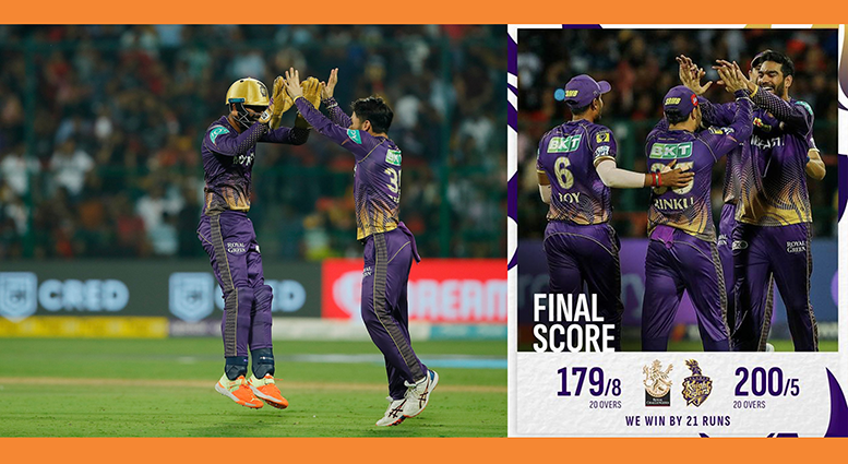 বেঙ্গালুরুকে ২১ রানে হারিয়ে পয়েন্ট টেবিলে সপ্তম স্থানে উঠে আসলো কলকাতার দলটি। প্রথমে ব্যাট করে ৫ উইকেট হারিয়ে ২০০ রান সংগ্রহ করে কেকেআর। জবাব দিতে নেমে ৮ উইকেট হারিয়ে ১৭৯ রনে থেমে যেতে হয় বেঙ্গালুরুকে। এই পরাজয়ের কারণে ৮ ম্যাচে ৮ পয়েন্ট নিয়ে পঞ্চম স্থানে রয়েছে রয়েল চ্যালেঞ্জার্স বেঙ্গালুরু।