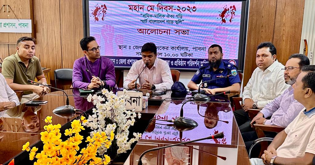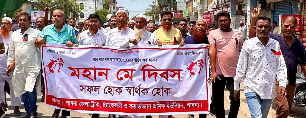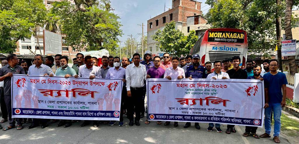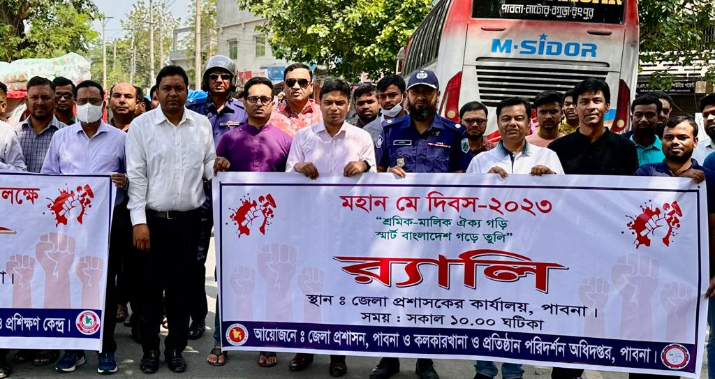 এস এম আলম, ১ মে: পাবনায় পালিত হয়েছে মহান মে দিবস। এ উপলক্ষে সকালে জেলা প্রশাসনের আয়োজনে জেলা প্রশাকের কার্যালয় থেকে একটি র্যালী বের হয়ে প্রধান প্রধান সড়ক প্রদক্ষিন করে। পরে জেলা প্রশাসকের সম্মেলন কক্ষে কলকারখানা ও প্রতিষ্ঠান অধিদপ্তরের উপ-মহা পরিদর্শক জাহাঙ্গীর আলমের সভাপতিত্বে সভায় প্রধান অতিথির বক্তব্য দেন অতিরিক্ত জেলা প্রশাসক রাজস্ব আব্দুল্লাহ আল মামুন। বক্তব্য দেন অতিরিক্ত পুলিশ সুপার বেনজীর আহমেদ, অতিরিক্ত জেলা প্রশাসক শরীফ আহম্মেদ। এছাড়াও বিআরটিসি বাস ডিপো, পাবনা মটোর শ্রমিক ইউনিয়ন, ট্রাক ট্যাংক লরী শ্রমিক ইউনিয়ন জেলা রিক্সা ও অটোরিক্সা শ্রমিক ইউনিয়ন, সেলুন সমিতি, পৌল্ট্রি সমিতি, ডেইরি শ্রমিক ইউনিয়ন, মহিলা শ্রমিক লীগ, দর্জি শ্রমিক সহ বিভিন্ন শ্রমিক সংগঠন পৃথকভাবে শোভাযাত্রা সহ বিভিন্ন কর্মসুচী পালন করে।
