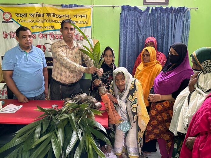 পাবনায় অসহায় গরীব মানুষের মধ্যে বিতরন করা হয়েছে দুই শতাধিক ফলজ বৃক্ষ