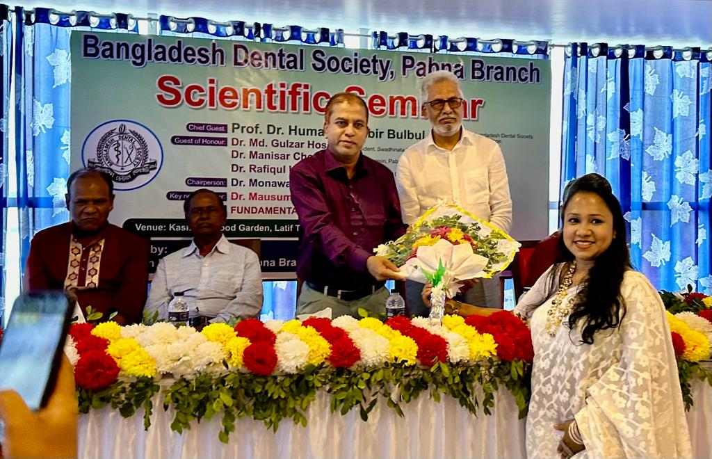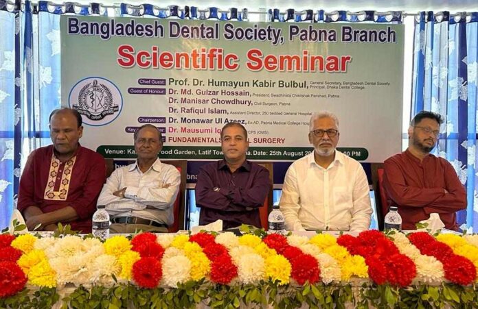 এস এম আলম, ২৫ আগস্ট: পাবনা শহরের প্রাণকেন্দ্রে অবস্থিত লতিফ টাওয়ারের কাশমেরি ফুড গার্ডেনে বাংলাদেশ ডেন্টাল সোসাইটি, পাবনা শাখার কমিটি ঘোষণা করা হয়। অনুষ্ঠানে পাবনা মেডিক্যাল কলেজ হাসপাতালের প্রাক্তন সহকারী পরিচালক ডাঃ মনোয়ার উল আজীজ এর সভাপতিত্বে প্রধান অতিথির বক্তব্য দেন বাংলাদেশ ডেন্টাল সোসাইটির জেনারেল সেক্রেটারি ও ঢাকা ডেন্টাল কলেজ এর প্রিন্সিপাল ডাঃ হুমায়ুন কবির বুলবুল। বিশেষ অতিথির বক্তব্য দেন পাবনা ২৫০ বেড জেনারেল হাসপাতালের সহকারী পরিচালক ডাঃ রফিকুল ইসলাম এবং স্বাধীনতা চিকিৎসক পরিষদ পাবনা জেলা শাখার সভাপতি ডাঃ গোলজার হোসেন। আরো বক্তব্য দেন ঢাকা ডেন্টাল কলেজের প্রবীন ও অবসরপ্রাপ্ত শিক্ষক প্রফেসর ডাঃ মালেক ভুঁইয়া। সভায় সায়েন্টিফিক সেশনে “ফান্ডামেন্টালস অফ ওরাল সার্জারি” নিয়ে বক্তব্য দেন কী-নোট স্পীকার ডাঃ মৌসুমি ইকবাল। পাবনা জেলার অন্তর্গত সকল উপজেলা থেকে অর্ধশতাধিক ডেন্টাল সার্জন এই অনুষ্ঠানে উপস্থিত ছিলেন। উক্ত অনুষ্ঠানে ৩৯ সদস্য বিশিষ্ট বাংলাদেশ ডেন্টাল সোসাইটি, পাবনার কমিটি ঘোষণা করা হয়। উক্ত কমিটিতে ডাঃ মনোয়ার উল আজীজ কে প্রেসিডেন্ট ও ডাঃ জুলকারনাইন ফয়েজ কে সেক্রেটারি হিসেবে অধিষ্ঠিত করা হয়।