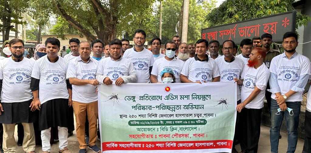 এস এম আলম, ১ সেপ্টেম্বর: ডেঙ্গু প্রতিরোধ এবং এডিস মশা নিধনে পরিচ্ছন্নতা অভিযান শুরু করেছে ২৫০ শয্যা বিশিষ্ট পাবনা জেনারেল হাসপাতাল। সকালে এ অভিযানের উদ্বোধন করেন সিভিল সার্জন ড. মনিসর চৌধুরী। এ সময় উপস্থিত ছিলেন স্থানীয় সরকারের উপ-পরিচালক সাইফুর রহমান, পাবনা পৌরসভার মেয়র শরিফ উদ্দিন প্রধান, ২৫০ শয্যা বিশিষ্ট পাবনা জেনারেল হাসপাতালের সহকারী পরিচালক ডাক্তার রফিকুল হাসান, বিএমএ পাবনা জেলা শাখার সাধারণ সম্পাদক ডা আকসাদ আল মাসুর, আবাসিক চিকিৎসক ডা জাহিদুল ইসলাম, ডাক্তার কুতুব উদ্দিন আউয়াল, ডাক্তার সাবেরা সুলতানা বিশ্বাস, ডাক্তার সিরাজুল ইসলাম, ডাক্তার মুনমুন মাহমুদ সহ হাসপাতালের সর্বস্তরের কর্মীরা। পাবনা পৌরসভার সহযোগিতায় বিডি ক্লিন বাংলাদেশ পরিছন্নতা অভিযানের আয়োজন করে।