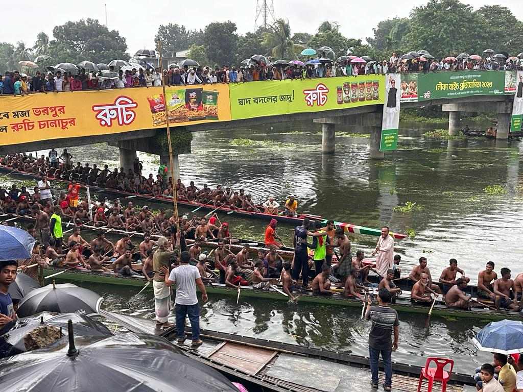 এস এম আলম, ২০ সেপ্টেম্বর: স্কয়ার ফুড এন্ড বেভারেজ লিমিটেডের পৃষ্টপোষকতায় জাতির পিতা বঙ্গবন্ধু শেখ মুজিবুর রহমান স্মরণে পাবনার আটঘরিয়া উপজেলার গরুরী গ্রামের চিকনাই নদীতে চলছে নৌকা বাইচ প্রতিযোগিতা। বিকেলে গ্রুপ পর্যায়ের এ প্রতিযোগিতায় ১০টি বাইচ দল অংশগ্রহন করে। তীব্র প্রতিদ্বন্দিতাপুর্ন এ নৌকা বাইচে বিজয়ী হয় চান্দাই জনতা এক্সপ্রেস, শেরে বাংলা এক্সপ্রেস, গোল্ডেন এক্সপ্রেস, জমাইখিরি গোবিন্দপুর এক্সপ্রেস ও হাদল দুরন্ত এক্সপ্রেস। ঈশ্বরদী উপজেলা আওয়ামীলীগের সাধারন স¤পাদক আবুল কালাম আজাদ মিন্টু, আটঘরিয়া পৌর মেয়র শহিদুল ইসলাম রতন , উপজেলা চেয়ারম্যান তানভীর ইসলাম সহ উৎসব মুখোর পরিবেশে বিপুল সংখ্যক দর্শক এ নৌকা বাইচ উপভোগ করেন। রুচির সৌজন্যে এ প্রতিযোগিতায় পাবনা ও সিরাজগঞ্জের মোট ১৫ টি দল অংশ গ্রহন করছে।