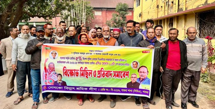 পাবনায় নেসকো সরকার ঘোষিত ৫% বিশেষ সুবিধা বাস্তবায়ন না করায় বিক্ষোভ মিছিল ও প্রতিবাদ সমাবেশ