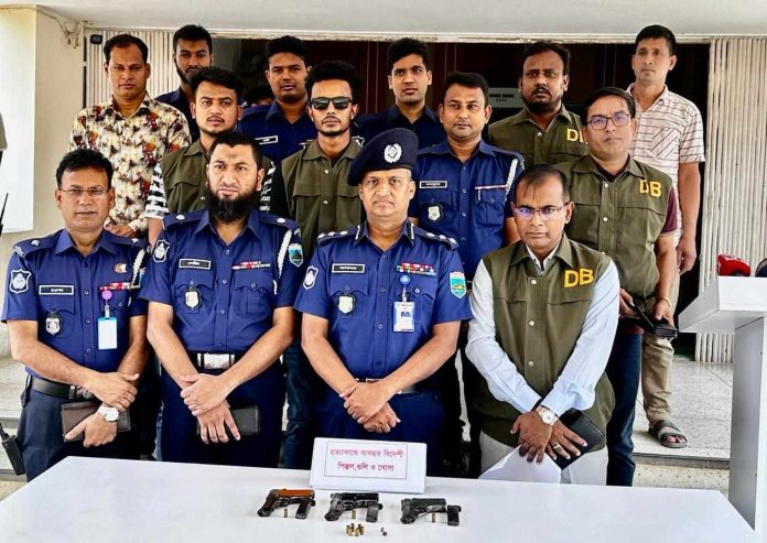 এস এম আলম, ৯ এপ্রিল: পাবনা সদর উপজেলার চাঞ্চল্যকর আত্মসমর্পনকৃত সর্বহারা নেতা আব্দুর রাজ্জাক হত্যার রহস্য উদঘাটন করেছে পুলিশ। এঘটনায় ৫ জনকে গ্রেফতার করা হয়েছে। এসময় তাদের কাছ থেকে হত্যাকান্ডে ব্যবহৃত ৩টি বিদেশি পিস্তল ও গুলি উদ্ধার করা হয়েছে। দুপুরে পাবনা পুলিশ সুপার কার্যালয়ে এক সংবাদ সম্মেলনে এ তথ্য জানান অতিরিক্ত ডিআইজি আকবর আলী মুন্সী। গ্রেফতারকৃতরা হলেন- পাবনা সদর উপজেলার গয়েশপুর ইউনিয়নের হরিনারায়নপুরের মো. বক্কর প্রামাণিকের ছেলে মো. ওহিদুল্লাহ (৪৫), পাবনা পৌর এলাকার পশ্চিম সাধুপাড়ার মহসিন রেজার ছেলে মো. আকাশ (৩০), একই এলাকার সিরাজুল ইসলামের ছেলে মো. শোভন ওরফে শুভ ওরফে ভালা (২৮), চর সাধুপাড়া এলাকার মৃত রুস্তম প্রামানিকের ছেলে আব্দুল হান্নান (৪৮) এবং চর শিবরামপুর এলাকার কালু বিশ্বাসের ছেলে আব্দুর রহমান (৩৫)। অতিরিক্ত ডিআইজি জানান, গোপন সংবাদ এবং আধুনিক তথ্যপ্রযুক্তির সহায়তায় ডিএমপির গুলশান থানা এলাকায় অভিযান চালিয়ে কিলিং মিশনে সরাসরি অংশগ্রহণকারী আসামি মো. ওহিদুল্লাহকে গ্রেফতার করা হয়। পরবর্তীতে তার দেয়া তথ্যের ভিত্তিতে আকাশ এবং শোভনকে আটক করা হয়। পরে তাদের দেয়া তথ্যের ভিত্তিতে আব্দুল হান্নানকে ২টি অস্ত্র এবং আব্দুর রহমানকে ১টি অস্ত্রসহ গ্রেফতার করা হয়। তিনি আরও জানান, ওহিদুল্লাহ এবং আত্মসমর্পণকৃত সর্বহারা নেতা আব্দুর রাজ্জাক গয়েশপুর ইউনিয়নের হরিনারায়নপুরের বাসিন্দা। পারিবারিক সূত্র ধরেই তাদের মধ্যে দীর্ঘদিনের বিরোধ ছিল। পরবর্তীতে বাড়ি-ঘর ভাংচুর, মারামারি এবং এলাকায় আধিপত্য বিস্তার নিয়ে উভয়ের মধ্যে চরম শক্রতা শুরু হলে ওহিদুল্লাহ নিজ এলাকা ছেড়ে শহরের সাধুপাড়া এলাকায় ভাড়া বাসায় বসবাস করতে শুরু করে। এরই জেরে ওহিদুল্লাহের মনে চরম ক্ষোভের সৃষ্টি হয় এবং আব্দুর রাজ্জাককে হত্যার পরিকল্পনা করতে থাকে। ঘটনার দিন গত ১৭ মার্চ আসামি ওহিদুল্লাহ স্থানীয়ভাবে তথ্য সংগ্রহ করে তার অপর দুই সহযোগীদের নিয়ে মোটরসাইকেল যোগে সাধুপাড়া থেকে মানিকনগর বাজারে যায় এবং সুযোগ বুঝে বিল্টুর দোকানে চা খাওয়া অবস্থায় উপূর্যপুরি গুলি করে মৃত্যু নিশ্চিত করে পালিয়ে যায়।