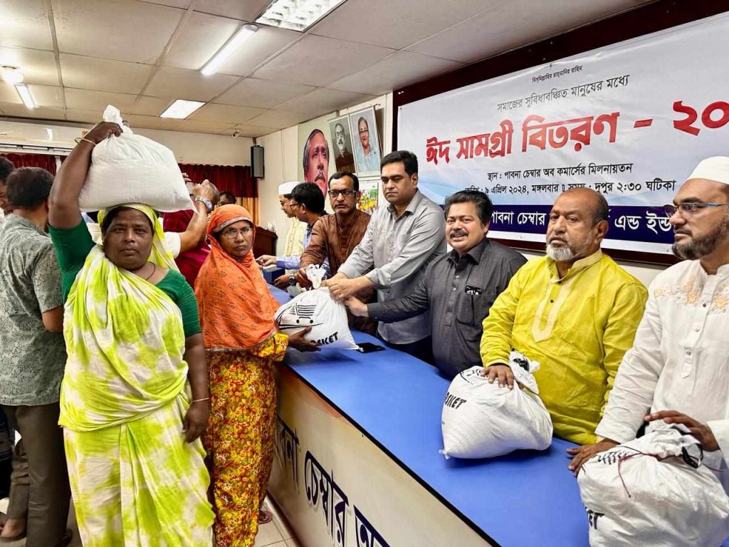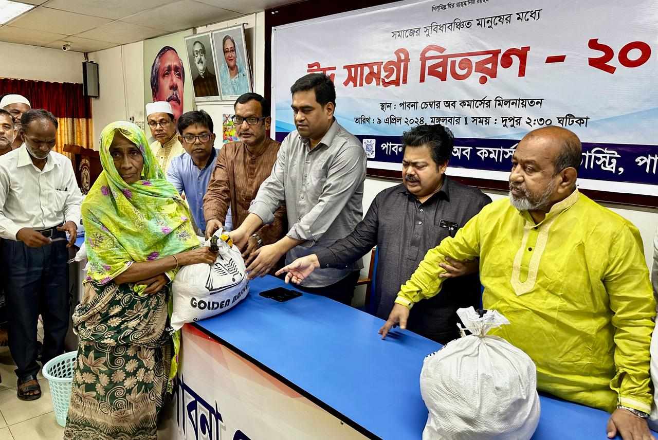 এস এম আলম, ৯ এপ্রিল: ৫শ অসহায় গরিব পরিবারের মধ্যে ঈদ উপহার হিসেবে খাদ্য সামগ্রী বিতরন করেছে পাবনা চেম্বার অব কমার্স এন্ড ইন্ডাস্ট্রিজ। বিকেলে চেম্বার মিলনায়তনে ঈদ সামগ্রী বিতরন করেন চেম্বার অব কমার্স এন্ড ইন্ডাস্ট্রিজের সিনিয়র সহ-সভাপতি আলী মর্তুজা বিশ্বাস সনি। এসময় উপস্থিত ছিলেন চেম্বারের সহ-সভাপতি ফুরকান আলী বিশ্বাস, পরিচালক ও প্রেসক্লাবের সভাপতি এবিএম ফজলুর রহমান, পরিচালক আলহাজ্জ্ব ফরিদুল ইসলাম, পরিচালক মাসুদুর রহমান মিন্টু, পরিচালক সাজ্জাদ হোসেন বাচ্চু, পরিচালক জাহাঙ্গীর হোসেন, চেম্বারের সচিব আব্দুর রাজ্জাক সহ স্থানীয় ব্যবসায়ী নেতৃবৃন্দ। প্রধানমন্ত্রীর আহবানে সারা দিয়ে পাবনা চেম্বার এবার ইফতার পাটির পরিবতে অসহায় গরিবদের মধ্যে এসব খাদ্য সামগ্রী বিতরন করেন।