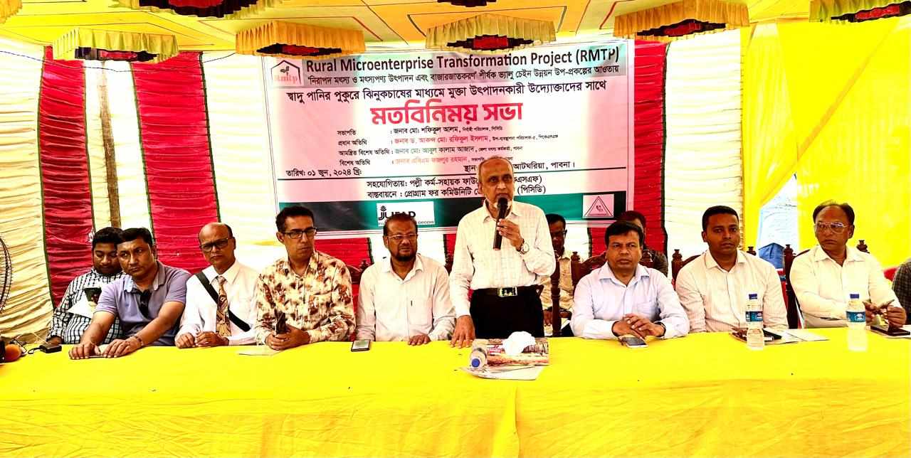 এস এম আলম, ১ জুন: মৎস্য ও মৎস্য জাতীয় পন্য উৎপাদন ও বাজারজাত করন প্রকল্পের আওতায় পাবনায় শুরু হয়েছে ঝিনুক থেকে মুক্তা আহরন কর্মসূচী। দুপুরে আটঘরিয়ার ভরতপুরে প্রধান অতিথি হিসেবে এ কাজের উদ্বোধন করেন পল্লী কর্ম সহায়ক ফাউন্ডেশনের উপ-ব্যবস্থাপনা পরিচালক ড. আকন্দ মো: রফিকুল ইসলাম। প্রোগ্রাম ফর কমিউনিটি ডেভলপমেন্টের নির্বাহী পরিচালক মো: শফিকুল ইসলামের সভাপতিত্বে মুক্তা চাষী সমাবেশে বক্তব্য দেন জেলা মৎস্য কর্মকর্তা আবুল কালাম আজাদ ও মাছরাঙা টেলিভিশনের বিশেষ প্রতিনিধি ও পাবনা প্রেসক্লাবের সাবেক স¤পাদক উৎপল মির্জা। এসময় উপস্থিত ছিলেন অনলাইন পত্রিকা নতুন চোখ এর প্রকাশক ও বাংলা টিভির জেলা প্রতিনিধি এস এম আলম, দৈনিক প্রথম আলোর প্রতিনিধি সরোয়ার উল্লাস, এটিএন নিউজের স্টাফ রিপোর্টার রিজভী জয়, সাংবাদিক কামাল আহমেদ সিদ্দিকী। অনুষ্ঠানে প্রধান অতিথি পল্লী কর্ম সহায়ক ফাউন্ডেশনের উপ-ব্যবস্থাপনা পরিচালক ড. আকন্দ মো: রফিকুল ইসলাম বলেন, মাছের পাশপাশি মুক্তা চাষ করে যে কোন উদ্যোক্তা দ্রুত ভাগ্য পরিবর্তন করতে পারেন। এ কারনে দ্রুত জনপ্রিয় হচ্ছে এ প্রকল্পটি। অনুষ্ঠানের আয়োজক প্রতিষ্ঠান প্রোগ্রাম ফর কমিউনিটি ডেভলপমেন্ট পিসিডির নির্বাহী পরিচালক মো: শফিকুল ইসলাম বলেন, এ প্রকল্পের আওতায় পিসিডির আর্থিক ও প্রযুক্তিগত সহায়তায় ইতোমধ্যেই ৩৩ জন উদ্যোক্তা নিজেদের ভাগ্য বদলে ফেলেছে। আগামী অর্থ বছরে আরো ১০ জনকে এ প্রকল্পের আওতায় আনা হবে। পরে সফল মুক্তাচাষীদের প্রকল্প পরিদর্শন করেন ফাউন্ডেশনের উপ-ব্যবস্থাপনা পরিচালক।