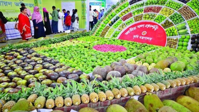 কৃষি মন্ত্রণালয়ের উদ্যোগে রাজধানীর খামারবাড়ি কেআইবি চত্বরে তিন দিনব্যাপী জাতীয় ফলমেলা শুরু হচ্ছে বৃহস্পতিবার (৬ জুন)। ‘ফলে পুষ্টি অর্থ বেশ-স্মার্ট কৃষির বাংলাদেশ’ প্রতিপাদ্যে আয়োজিত এ মেলা শেষ হবে আগামী শনিবার (৮ জুন)।মঙ্গলবার (৪ জুন) কৃষি মন্ত্রণালয়ের সংবাদ বিজ্ঞপ্তিতে জানানো হয়েছে, এবারের ফলমেলায় ৮টি সরকারি ও ৫৫টি বেসরকারি প্রতিষ্ঠান অংশগ্রহণ করবে। মোট ৬৩টি স্টলে বিভিন্ন ধরনের ফল ও ফলচাষ প্রযুক্তি প্রদর্শন করা হবে।