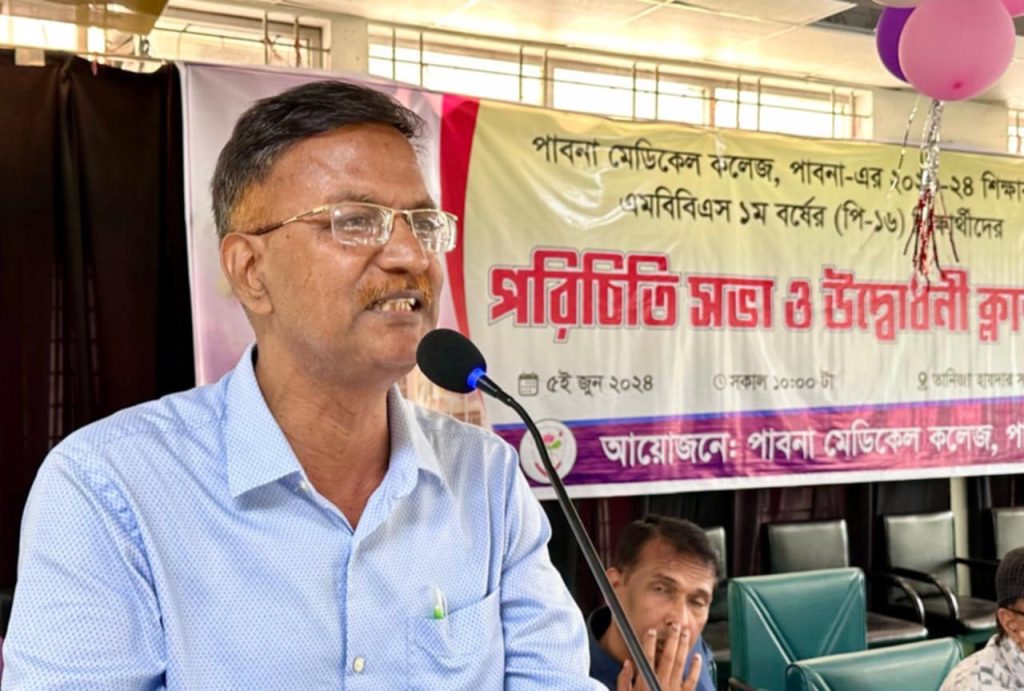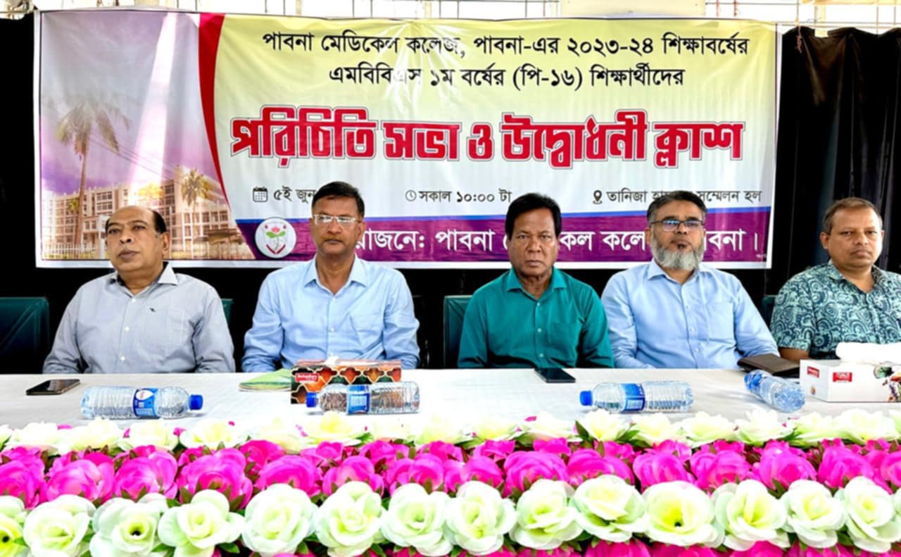 এস এম আলম, ৫ জুন: পাবনা মেডিকেল কলেজে অনুষ্ঠিত হয়েছে এমবিবিএস প্রথম বর্ষের নবাগত শিক্ষার্থীদের পরিচিতি সভা ও উদ্বোধনী ক্লাস। কলেজের তানিজা হায়দার হলে অনুষ্ঠিত এ সভায় মেডিকেল কলেজের অধ্যক্ষ প্রফেসর ডক্টর ওবায়দুল্লাহ ইবনে আলীর সভাপতিত্তে বক্তব্য দেন কলেজের সাবেক অধ্যক্ষ প্রফেসর ডা. রিয়াজুল হক, কলেজের মেডিসিন বিভাগের প্রধান অধ্যাপক ডাক্তার শাফিকুল হাসান, পাবনা জেনারেল হাসপাতালের সহকারী পরিচালক ডা: রফিকুল হাসান, বাংলাদেশ মেডিকেল অ্যাসোসিয়েশনের পাবনা শাখার সাধারণ সম্পাদক ডা: আকসার আল মাসুর, ভারপ্রাপ্ত সভাপতি ডা: সাইফুদ্দিন মোহাম্মদ এহিয়া, স্বাধীনতা চিকিৎসক পরিষদের পাবনা জেলা শাখার সাধারণ সম্পাদক ডা: বিপ্লব কুমার সাহা, ওজিএসবি পাবনা এর সভাপতি ডাঃ শাহিন ফেরদৌস সানু, পাবনা মেডিক্যাল কলেজের ফরেনসিক মেডিসিন বিভাগের বিভাগীয় প্রধান ডা. শারমীন শবনম, সহকারী অধ্যাপক ডা. মোহাম্মদ টিপু সুলতান, একাডেমিক কোঅর্ডিনেটর পাবনা মেডিকেল কলেজ অধ্যাপক ডা. আহম্মদ তাউস, পাবনা মানসিক হাসপাতালের পরিচালক শাফকাত ওয়াহিদ, সহকারী পরিচালক ২৫০ শয্যাবিশিষ্ট জেনারেল হাসপাতাল ডা: মো: রফিকুল হাসান, অভিভাবক বীর মুক্তিযোদ্ধা আব্দুল মতীন, অভিভাবক হাসিনা আক্তার হাসি সহ শিক্ষক, শিক্ষার্থী, অভিভাবকগণ এবং বিশেষজ্ঞ চিকিৎসকরা। পরে এমবিবিএস প্রথম বর্ষের শিক্ষার্থীদের পরিচিতি সভা অনুষ্ঠিত হয়।