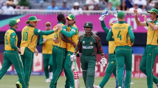 দক্ষিণ আফ্রিকার স্পিনার কেশভ মহারাজ ২৭ রান দিয়ে নেন ৩টি উইকেট। ২টি করে উইকেট কাগিসো রাবাদা আর এনরিখ নরকিয়ার।এর আগে তানজিম হাসান সাকিব-তাসকিন আহমেদের দুর্দান্ত বোলিংয়ে ৬ উইকেট হারিয়ে মাত্র ১১৩ রান তুলতে পারে দক্ষিণ আফ্রিকা। হেনরিখ ক্লাসেন ৪৪ বলে ৪৬ আর ডেভিড মিলার ৩৮ বল খেলে ২৯ রান না করলে আরও খারাপ অবস্থা হতো প্রোটিয়াদের।২৩ রানে ৪ উইকেট হারানো দলকে টেনে তোলেন এই দুজন। পঞ্চম উইকেটে প্রতিরোধ গড়ে তারা যোগ করেন বল সমান ৭৯।তানজিম সাকিব ৪ ওভারে ১৮ রান খরচায় নেন ৩টি উইকেট। তাসকিন সমান ওভারে ১৯ রানে নেন ২টি। রিশাদ হোসেন ৪ ওভারে ৩২ রান দিয়ে নেন একটি উইকেট।