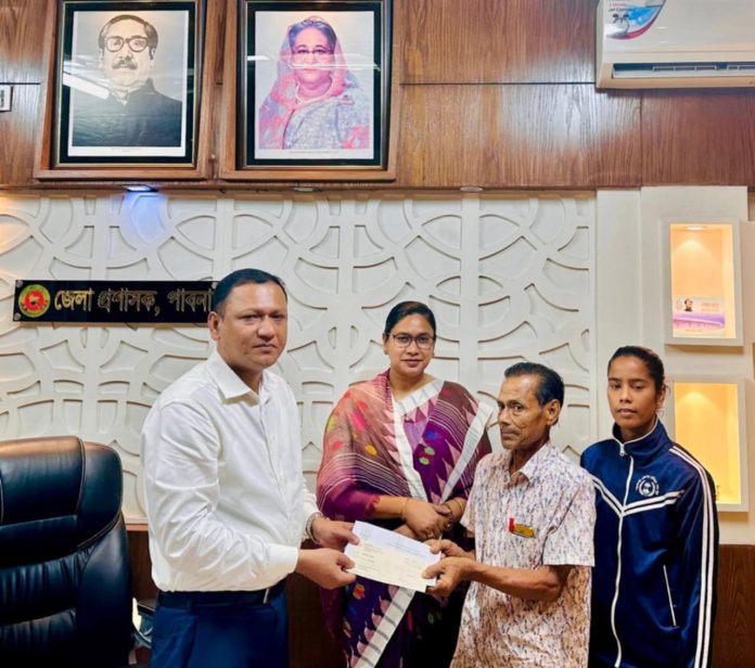 ভলিবল খেলোয়ার মুর্শিদা বীথিকে মাননীয় প্রধানমন্ত্রীর কল্যাণ তহবিল থেকে ১ লক্ষ টাকার অনুদান