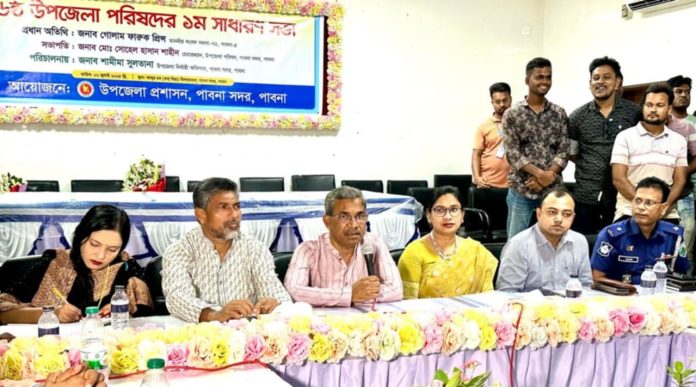 এস এম আলম, ২ জুলাই: নবনির্বাচিত উপজেলা চেয়ারম্যান সহ জনপ্রতিনিধিদের নিয়ে পাবনা সদর উপজেলা পরিষদের সাধারণ সভা অনুষ্ঠিত হয়েছে। সভার শুরুতে উপজেলা চেয়ারম্যান সোহেল হাসান শাহিন, ভাইস চেয়ারম্যান ইমরান শেখ ও মহিলা ভাইস চেয়ারম্যান রাবেয়া খাতুন সুমিকে ফুল দিয়ে বরণ করে নেন পাবনা সদর আসনের সংসদ সদস্য গোলাম ফারুক প্রিন্স। এসময় ফুলেল শুভেচ্ছা জানান উপজেলা নির্বাহী কর্মকর্তা শামীমা সুলতানা। নবনির্বাচিত উপজেলা চেয়ারম্যান সোহেল হাসান শাহিনের সভাপতিত্বে ও উপজেলা নির্বাহী অফিসার শামীমা সুলতানার পরিচালনায় সাধারণ সভায় প্রধান অতিথির বক্তব্য দেন সংসদ সদস্য গোলাম ফারুক প্রিন্স এমপি। নতুন পরিষদের উদ্দেশ্যে তিনি বলেন, তৃণমূল পর্যায়ের উন্নয়ন বাস্তবায়ন হয় স্থানীয় সরকারের মাধ্যমে। এর বড় একটি অংশ উপজেলা পরিষদ। এখানে শৃঙ্খলা না থাকলে সরকারের লক্ষ্য শতভাগ বাস্তবায়ন অসম্ভব। এক্ষেত্রে নতুন উপজেলা পরিষদ স্বচ্ছতা ও নিষ্ঠার সাথে দায়িত্ব পালনের তাগিদ দেন সংসদ সদস্য গোলাম ফারুক প্রিন্স এমপি। এসময় পাবনা সদর উপজেলা সহকারী কমিশনার (ভুমি) মুরাদ হোসেন ও সদর থানার অফিসার ইনচার্জ রওশন আলী সহ উপজেলার বিভিন্ন দপ্তরের কর্মকর্তারা উপস্থিত ছিলেন। এ সভা শেষে স্থানীয় সরকার প্রকৌশল অধিদপ্তরের আরইআরএমপি কর্মসূচীর আওতায় নারী কর্মীদের সঞ্চয়ের চেক ও সনদপত্র বিতরণ অনুষ্ঠানে যোগ দেন সংসদ সদস্য গোলাম ফারুক প্রিন্স এমপি। এ কর্মসূচীর আওতায় সড়ক ও অবকাঠামোগত উন্নয়ন কাজে নিয়োজিত উপজেলার শত নারীকর্মীর মাঝে চেক ও সনদপত্র তুলে দেন এমপি। এ অনুষ্ঠানে সভাপতিত্ব করেন পাবনার স্থানীয় সরকার প্রকৌশল অধিদপ্তরের নির্বাহী প্রকৌশলী মনিরুল ইসলাম। এসময় উপজেলা প্রকৌশলী রাকিব হোসেন, ভাইস চেয়ারম্যান মো: ইমরান খান, ভাইস চেয়ারম্যান (মহিলা) রাবেয়া খাতুন, পাবনা থানা সদর উপজেলার সকল সরকারি অফিসের অফিস প্রধানগণ, ১০ ইউনিয়নের চেয়ারম্যানবৃন্দ, অন্যান্য সুধীজন এবং প্রিন্ট ও ইলেকট্রনিক মিডিয়ার কর্মীবৃন্দ সহ এ দপ্তরের অনেকেই উপস্থিত ছিলেন।