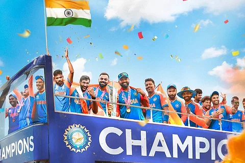 দীর্ঘ ১৩ বছর পর আইসিসির ট্রফি জয়ের উদযাপনটা একটু দেরিতেই করতে হলো ভারতীয় দলকে। তা না করে উপায় ছিল না রোহিত শর্মাদের। গেল শনিবার দক্ষিণ আফ্রিকাকে ৭ রানে হারিয়ে শিরোপা নিয়ে তড়িঘড়ি করে সমর্থকদের নিয়ে বিজয় উল্লাসে মেতে ওঠার কথা ছিল তাদের। কিন্তু হারিকেন ‘বেরিল’ রোহিতদের সেই উচ্ছ্বাস স্থগিত করে দিয়েছিল।অবশেষে চারদিন পর আজ বৃহস্পতিবার দেশে ফিরেছে ভারতীয় দল। বিমানবন্দরে ক্রিকেটারদের সাদর অভ্যর্থনা জানিয়েছে ভক্তরা। তখনই মোটামুটি একটি উদযাপন সেরে নিয়েছে তারা।ব্মিানবন্দর থেকে এরপর ভারতীয় দল দিল্লির একটি পাঁচ তারকা হোটেলে। সেখানে বিশ্রাম সেরে তারা সাক্ষাৎ করতে যায় প্রধানমন্ত্রী নরেন্দ্র মোদির সঙ্গে। ‘চ্যাম্পিয়ন’ লেখা জার্সি পরে টানা তৃতীয়বারের মতো নির্বাচিত প্রধানমন্ত্রীর সঙ্গে দেখা করে রোহিতরা। সেখানে ব্রেকফাস্টও করে নেন ক্রিকেটাররা।দুপুরেই মুম্বাইয়ের ফ্লাইট ধরবেন রোহিতরা। উদযাপনের মূল অংশ আয়োজন হবে মুম্বাইয়ে। সেখানে ছাদখোলা বাসে প্যারেড করবেন তারা। ট্রফি উঁচিয়ে ভক্তদের সঙ্গে আনন্দ ভাগাভাগি করবেন কোহলি-রোহিতরা।
