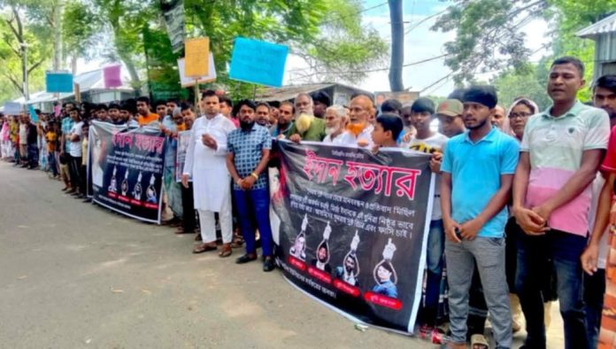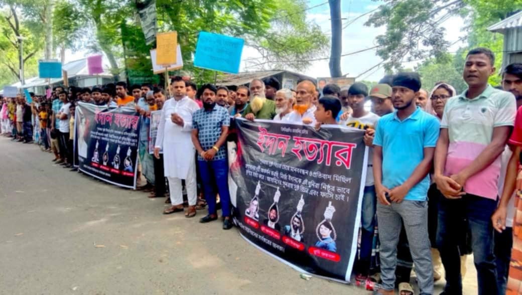 পাবনার বেড়ায় ইদান হত্যার বিচারের দাবিতে মানববন্ধন