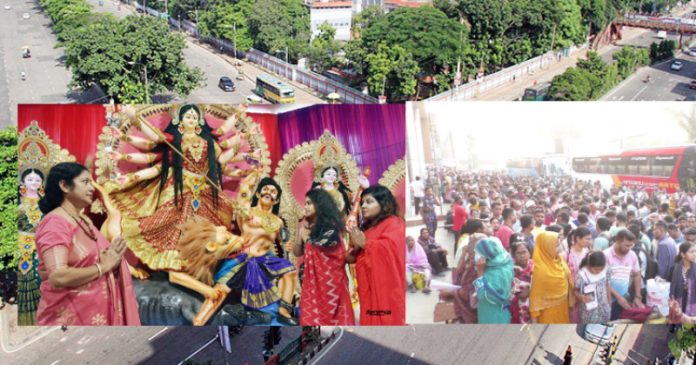 আজ বৃহস্পতিবার (১০ অক্টোবর) থেকে শুরু হয়েছে টানা চার দিনের ছুটি। সরকারি কর্মকর্তা-কর্মচারীরা আগামী রোববার (১৩ অক্টোবর) পর্যন্ত ছুটি কাটাবেন। দুর্গাপূজার ছুটি একদিন বাড়ানো এবং সঙ্গে দুদিন সাপ্তাহিক ছুটি থাকার কারণে এ ছুটির সুযোগ তৈরি হয়েছে।এর আগে দুর্গাপূজা উপলক্ষে বৃহস্পতিবার (১০ অক্টোবর) নির্বাহী আদেশে ছুটি ঘোষণা করেছে সরকার।দুর্গাপূজার সময় শুধু বিজয়া দশমীর দিন সরকারি ছুটি থাকে। এবার পূজায় বিজয়া দশমীর ছুটি আগামী রোববার (১৩ অক্টোবর)। বৃহস্পতিবারও ছুটি ঘোষণা করায় এবার পূজায় একদিন বাড়তি ছুটি পাওয়া যাচ্ছে।এরই মধ্যে বৃহস্পতিবার ছুটি ঘোষণা করে প্রজ্ঞাপন জারি করেছে জনপ্রশাসন মন্ত্রণালয়। সনাতন ধর্মালম্বীরা দুর্গাপূজার ছুটি বাড়ানোর দাবি জানিয়ে আসছিলেন। বৃহস্পতিবারের পর শুক্র ও শনিবার (১১ ও ১২ অক্টোবর) সাপ্তাহিক ছুটি। আর রোববার (১৩ অক্টোবর) থাকবে বিজয়া দশমীর ছুটি।জনপ্রশাসন মন্ত্রণালয়ের ছুটি বাড়ানোর প্রজ্ঞাপনে বলা হয়, সরকার আসন্ন দুর্গাপূজা উপলক্ষে ১০ অক্টোবর (বৃহস্পতিবার) নির্বাহী আদেশে দেশব্যাপী সাধারণ ছুটি ঘোষণা করলো। সাধারণ ছুটিকালীন সব সরকারি, আধা-সরকারি, স্বায়ত্তশাসিত, আধা-স্বায়ত্তশাসিত এবং বেসরকারি অফিস বন্ধ থাকবে।টানা চার দিন ছুটি উপলক্ষে অনেকেই রাজধানী ছেড়েছেন। বুধবার সন্ধ্যার পর রাজধানীর সায়েদাবাদ বাসস্ট্যান্ডে যাত্রীদের ভিড় দেখা গেছে।নির্বাহী আদেশে বৃহস্পতিবার ছুটি ঘোষণার প্রজ্ঞাপনে বলা হয়, জরুরি পরিষেবা যেমন- বিদ্যুৎ, পানি, গ্যাস ও অন্যান্য জ্বালানি, ফায়ার সার্ভিস, বন্দরগুলোর কার্যক্রম, পরিচ্ছন্নতা কার্যক্রম, টেলিফোন ও ইন্টারনেট, ডাক সেবা এবং এ সংশ্লিষ্ট সেবা কাজে নিয়োজিত যানবাহন ও কর্মীরা এই ছুটির আওতার বাইরে থাকবে।
