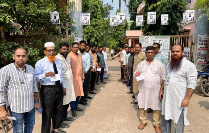 এস এম আলম, ২ নভেম্বর: পাবনায় উৎসবমুখোর পরিবেশে ডিপ্লোমা কৃষিবিদ ইনস্টিটিউট অব বাংলাদেশের পাবনা জেলা শাখার দ্বি-বার্ষিক নির্বাচন অনুষ্ঠিত হয়েছে। সকালে শহরের খামারবাড়ির অডিটরিয়ামে আয়োজিত এ নির্বাচনে দুটি প্যানেলে ৯ জন প্রার্থী প্রতিদ্বন্দ্বিতা করেন। নির্বাচনে ১১৮ ভোট পেয়ে জয়লাভ করে সভাপতি নির্বাচিত হন আবু সাঈদ শেখ। তার নিকটতম প্রতিদ্বন্দী আলিউজ্জামান। তিনি পেয়েছেন ৯১ ভোট। নির্বাচনে রিটার্নিং অফিসার ছিলেন এটিএম ফজলুল করিম, সহকারী রিটার্নিং অফিসার ছিলেন আশিকুর রহমান। এ সময় আইনশৃঙ্খলা রক্ষাকারী বাহিনী উপস্থিত ছিলেন।