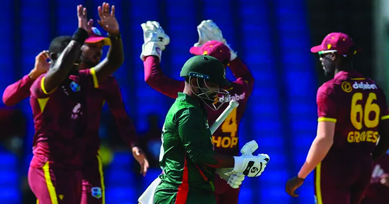 সেন্ট কিটসের ওয়ার্নার পার্কে টস জিতেছিলেন ওয়েস্ট ইন্ডিজ অধিনায়ক শাই হোপ। টস জিতে ব্যাট করার জন্য তিনি আমন্ত্রণ জানান বাংলাদেশ অধিনায়ক মেহেদী হাসান মিরাজকে।আমন্ত্রিত হয়ে ব্যাট করতে নেমে শুরুতেই সৌম্য সরকার উইকেট হারিয়ে বসেন। চতুর্থ ওভারে জাইডেন সিলসের প্রথম বলে গুদাকেশ মতির হাতে সহজ ক্যাচ দিয়ে আউট হন সৌম্য। মাত্র ২ রান করেন তিনি।এরপর ১৯ বল খেলে মাত্র ৪ রান করে আউট হন লিটন দাস। বরাবরের মতো তার আউটটা ছিল দৃষ্টিকটু। যেন বিরক্ত হয়েই ক্যাচ তুলে দিয়েছেন লিটন। এরপর মাঠে নেমে দ্রুত উইকেট হারান মেহেদী হাসান মিরাজ। ৫ বল খেলে মাত্র ১ রান করে আউট হন অধিনায়ক। তিনিও বোকার মত ব্যাটের ভেতরের কোনায় লাগিয়ে বোল্ড হন।