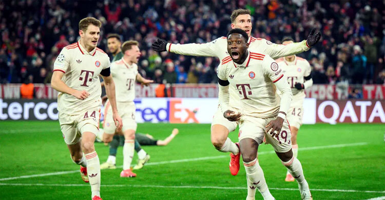 যুক্তরাজ্যের অন্যতম প্রদেশ স্কটল্যান্ডের ক্লাব সেল্টিক যেভাবে খেলেছে, তাতে বায়ার্ন মিউনিখের মাঠে জয় আশা করতেই পারে। তবে সফরকারীদের সেই স্বপ্ন ভেঙে তছনছ হয়ে গেছে শেষ মুহূর্তে বায়ার্নের আলফনসো ডেভিসের গোলে। ৯৪ মিনিটে সমতাসূচক (১-১) গোল এবং দুই লেগ মিলিয়ে ৩-২ ব্যবধানে জিতে চ্যাম্পিয়ন্স লিগের শেষ ষোলোতে চলে গেছে বায়ার্ন। বিদায় নিতে হয়ে সেল্টিককে।এর আগে ঘরের মাঠ গ্লাসগোতে প্রথম লেগে ২-১ ব্যবধানে হেরেছিল সেল্টিক। পরবর্তী রাউন্ডে যেতে হলে এই ম্যাচে জিততেই হতো তাদের। দুঃসাহসী পারফরম্যান্স দেখিয়ে অতিরিক্ত সময় পর্যন্ত ১-০ লিড ধরে রেখেছিল, বায়ার্নকে রেখেছিল চাপে। তবে শেষ পর্যন্ত জার্মান বুন্দেসলিগার ক্লাবটিকে আটকাতে পারেনি তারা।প্রথম থেকেই বায়ার্নকে চাপে রাখে সেল্টিক। ম্যাচের ১৬ মিনিটে কুয়েনের শট বায়ার্নের রাফায়েল গুয়েরেইরো গোললাইন থেকে ফিরিয়ে দেন।গেল শনিবার বুন্দেসলিগায় বায়ার লেভারকুসেনের সঙ্গে গোলশূন্য ড্র করা বায়ার্ন প্রথমার্ধে উল্লেখযোগ্য কোনো সুযোগ তৈরি করতে পারেনি। বিরতির ঠিক আগে ইংল্যান্ডের অধিনায়ক হ্যারি কেইন একটি শট নেন, যা গোলপোস্টে লেগে ফিরে আসে।লেভারকুসেনের বিপক্ষে ম্যাচে মাথায় আঘাত পাওয়া কেইন বিরতির পর মাঠ ছাড়েন। দ্বিতীয়ার্ধের শুরুতেই লিওন গোরেজকা দারুণ সুযোগ পেলেও সেল্টিকের গোলরক্ষক তা প্রতিহত করেন।