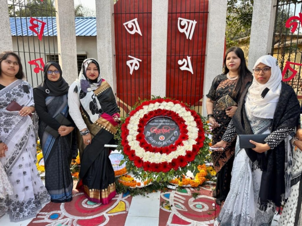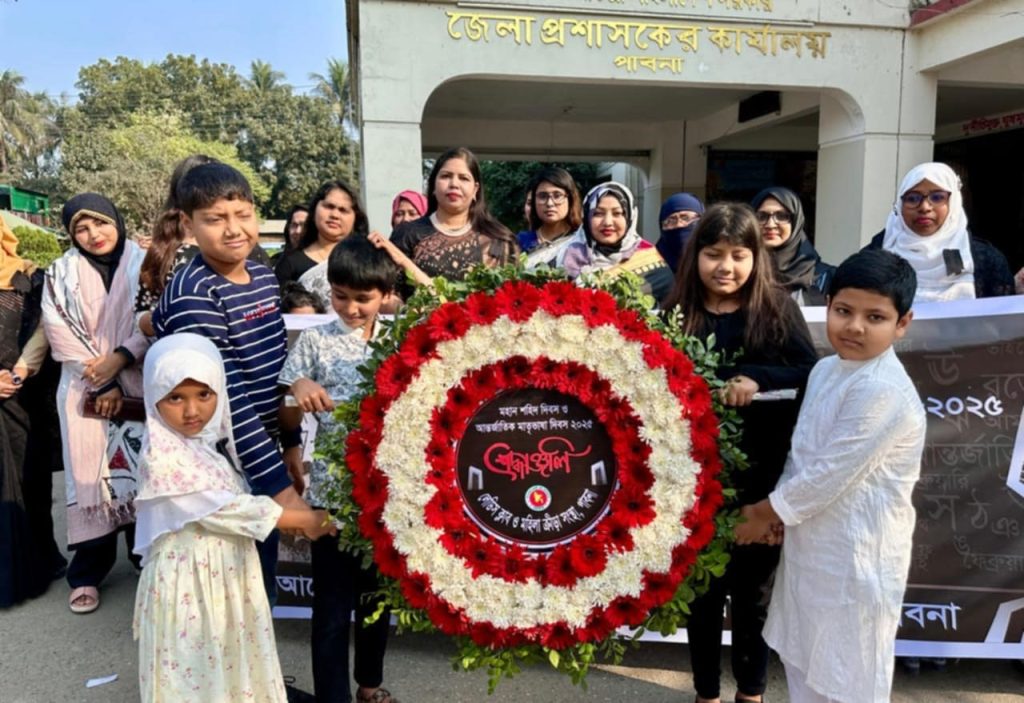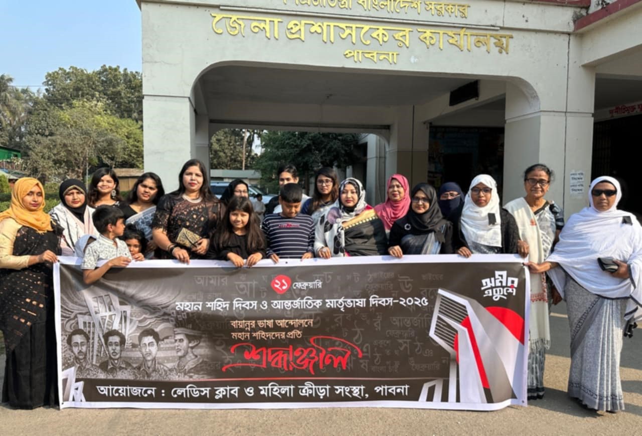 এস এম আলম, ২১ ফেব্রুয়ারি: পাবনায় মহান শহীদ দিবস ও আন্তর্জাতিক মাতৃভাষা দিবস পালিত হয়েছে। বায়ান্নর ভাষা আন্দোলনে মহান শহীদদের প্রতি শ্রদ্ধা জানিয়ে প্রভাতফেরী বের হয় এবং কেন্দ্রীয় শহীদ মিনারে শ্রদ্ধাঞ্জলী অর্পণ করেন লেডিস ক্লাব ও জেলা মহিলা ক্রীড়া সংস্থার সভাপতি এবং জেলা প্রশাসক এর সহধর্মিণী হুমায়েরা আয়েশা সহ লেডিস ক্লাব ও জেলা মহিলা ক্রীড়া সংস্থার সদস্যবৃন্দ।