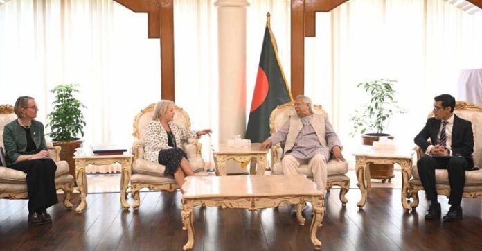 দেশের স্বাস্থ্য খাত শক্তিশালী করতে যুক্তরাজ্যের সহযোগিতা কামনা করেছেন অন্তর্বর্তী সরকারের প্রধান উপদেষ্টা অধ্যাপক মুহাম্মদ ইউনূস। বুধবার (৯ এপ্রিল) রাষ্ট্রীয় অতিথি ভবন যমুনায় যুক্তরাজ্যের বাণিজ্য দূত ব্যারোনেস রোজি উইন্টারটনের সঙ্গে বৈঠকে তিনি এ সহযোগিতা কামনা করেন। বৈঠকে উভয় পক্ষ দ্বিপাক্ষিক সম্পর্ক আরও গভীর করার অঙ্গীকার পুনর্ব্যক্ত করেন।এসময় ব্যারোনেস উইন্টারটন বলেন, বাংলাদেশ ও যুক্তরাজ্যের মধ্যে দীর্ঘ ও বিশ্বাসযোগ্য একটি সম্পর্ক রয়েছে। আমরা বাংলাদেশের চলমান সংস্কার কার্যক্রমের দিকনির্দেশনা দেখে সন্তুষ্ট।অধ্যাপক ইউনূস বলেন, আমরা একটি রূপান্তরকালীন সময় পার করছি। এখন আমাদের প্রধান লক্ষ্য হলো-প্রতিষ্ঠান পুনর্গঠন ও অগ্রাধিকার পুনর্নির্ধারণ।স্বাস্থ্যখাতে দক্ষ জনবলের ঘাটতির কথা উল্লেখ করে তিনি বলেন, বর্তমানে আমাদের দেশে নার্সের ঘাটতি রয়েছে। তবে নার্সিং শুধু বাংলাদেশের নয়, এটি একটি বৈশ্বিক চাহিদা। আমরা এমনভাবে নার্সদের প্রশিক্ষণ দিতে চাই, যেন তারা বিশ্বব্যাপী অবদান রাখতে পারে।