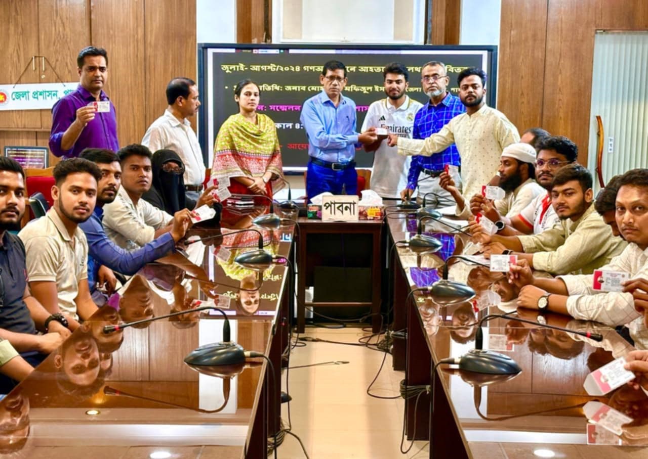 এস এম আলম, ১৫ এপ্রিল: পাবনায় জুলাই-আগস্ট গণঅভ্যুথানে আহতদের হেলথ কার্ড বিতরণ করা হয়েছে। বিকেলে জেলা প্রশাসকের সম্মেলন কক্ষে জেলা প্রশাসনের আয়োজনে এই হেলথ কার্ড বিতরণ করা হয়। পাবনা সিভিল সার্জন মো: আবুল কালাম আজাদের সভাপতিত্বে প্রধান অতিথি হিসেবে উপস্থিত ছিলেন জেলা প্রশাসক মোহাম্মদ মফিজুল ইসলাম। উপস্থিত ছিলেন নির্বাহী ম্যাজিস্ট্রেট ইশরাত তাসনিম বর্ষা, অনলাইন পত্রিকা নতুন চোখ এর প্রকাশক এবং বাংলা টিভির জেলা প্রতিনিধি এস এম আলম। এই হেলথ কার্ডের মাধ্যমে জুলাই-আগস্ট আহতরা সরকারি সকল হাসপাতলে বিনামূল্যে চিকিৎসা সেবা পাবে। এ সময় ২৭ জন জুলাই আগস্ট আন্দোলনের আহতদের হাতে এই হেলথ কার্ড তুলে দেন অতিথিবৃন্দরা।