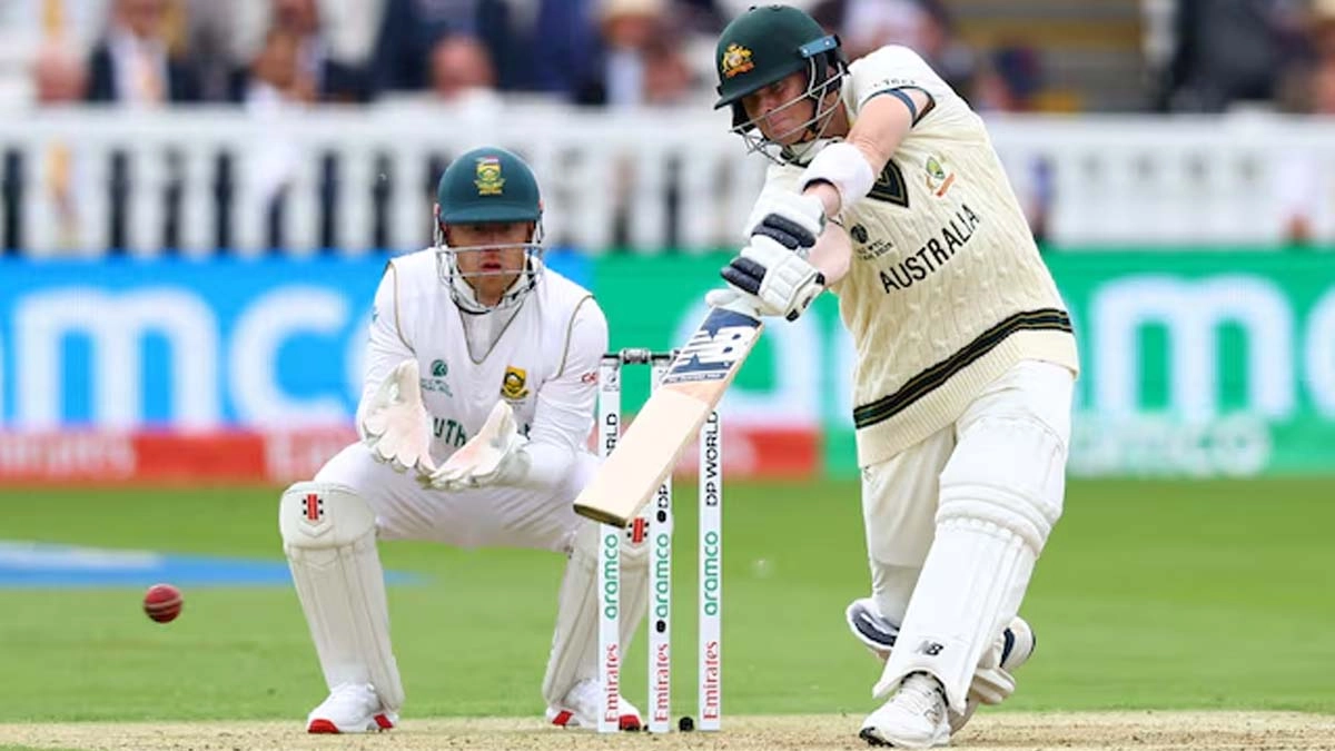 বিশ্ব টেস্ট চ্যাম্পিয়নশিপের ২০২৩-২০২৫ চক্রের ফাইনালের প্রথম দিনেই ১৪ উইকেটের পতন হয়েছে। টস হেরে প্রথমে ব্যাট করতে নেমে ২১২ রানে অলআউট হয়ে গেছে অস্ট্রেলিয়া। জবাবে ব্যাট করতে নেমে ৪ উইকেটে ৪৩ রান করে প্রথম দিনের খেলা শেষ করেছে দক্ষিণ আফ্রিকা। ডিফেন্ডিং চ্যাম্পিয়ন অস্ট্রেলিয়ার চেয়ে এখনো ১৬৯ রানে পিছিয়ে প্রোটিয়ারা। ইংল্যান্ডের ঐতিহাসিক লর্ডসে টেস্ট ক্রিকেটের মর্যাদাবান ট্রফি জেতার লড়াইয়ে নেমে প্রথম সেশনেই অস্ট্রেলিয়াকে বেকায়দায় ফেলে দেয় প্রথমবারের মতো ফাইনাল খেলতে আসা দক্ষিণ আাফ্রিকা। মধ্যাহ্নবিরতিতে যাওয়ার আগেই ৪ উইকেট হারিয়ে ফেলে অস্ট্রেলিয়া।দুই ব্যাটার উসমান খাজা ও মারনাস লাবুশেন শুরু থেকেই পিচে যেন কেমন অস্বস্তি অনুভব করছিলেন। দুইদিক থেকে আক্রমণে আসা দুই দক্ষিণ আফ্রিকান পেসার কাগিসো রাবাদা ও মার্কো জানসেনের বলে বারবার পরাস্ত হতে থাকেন তারা। ব্যাটে যেন বল স্পর্শ করাতেই পারছিলেন না খাজা ও লাবুশেন।