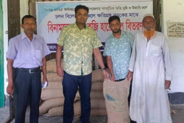 এস এম আলম, ১৪ জুন: পাবনা জেলার চাটমোহর উপজেলার নিমাঞ্চলে আগাম বন্যা আসায় প্রায় ১২০ হেক্টর জমির বোরো ধান পানিতে তলিয়ে যায়। এতে প্রায় ৪০০ কৃষক পরিবার ব্যাপক আর্থিক ক্ষতির সম্মুখীন হয়। তাৎক্ষণিকভাবে ক্ষতিগ্রস্ত পরিবারের পাশে দাঁড়িয়েছে জেলা প্রশাসন। জেলা প্রশাসন পাবনার কর্তৃক প্রত্যেক পরিবারকে ৩০ কেজি করে মোট ১২.০০ মে.টন চাল বরাদ্দ দেওয়া হয়েছে। উপজেলা নির্বাহী অফিসারের মাধ্যমে বরাদ্দকৃত চাল ক্ষতিগ্রস্ত কৃষক পরিবারের কাছে পৌঁছে দেওয়া হয়েছে। পাবনার জেলা প্রশাসক মোহাম্মদ মফিজুল ইসলাম জানান, আগাম বন্যায় ক্ষতিগ্রস্ত পরিবারের তালিকা প্রস্তুত করে খাদ্য সংকট মোকাবেলায় তাৎক্ষণিকভাবে খাদ্যশস্য বরাদ্দ প্রদান করা হয়েছে এবং পরবর্তী কৃষি প্রণোদনা প্রদানের ক্ষেত্রে উক্ত তালিকাভুক্ত ক্ষতিগ্রস্ত কৃষকগণ অগ্রাধিকার পাবেন।