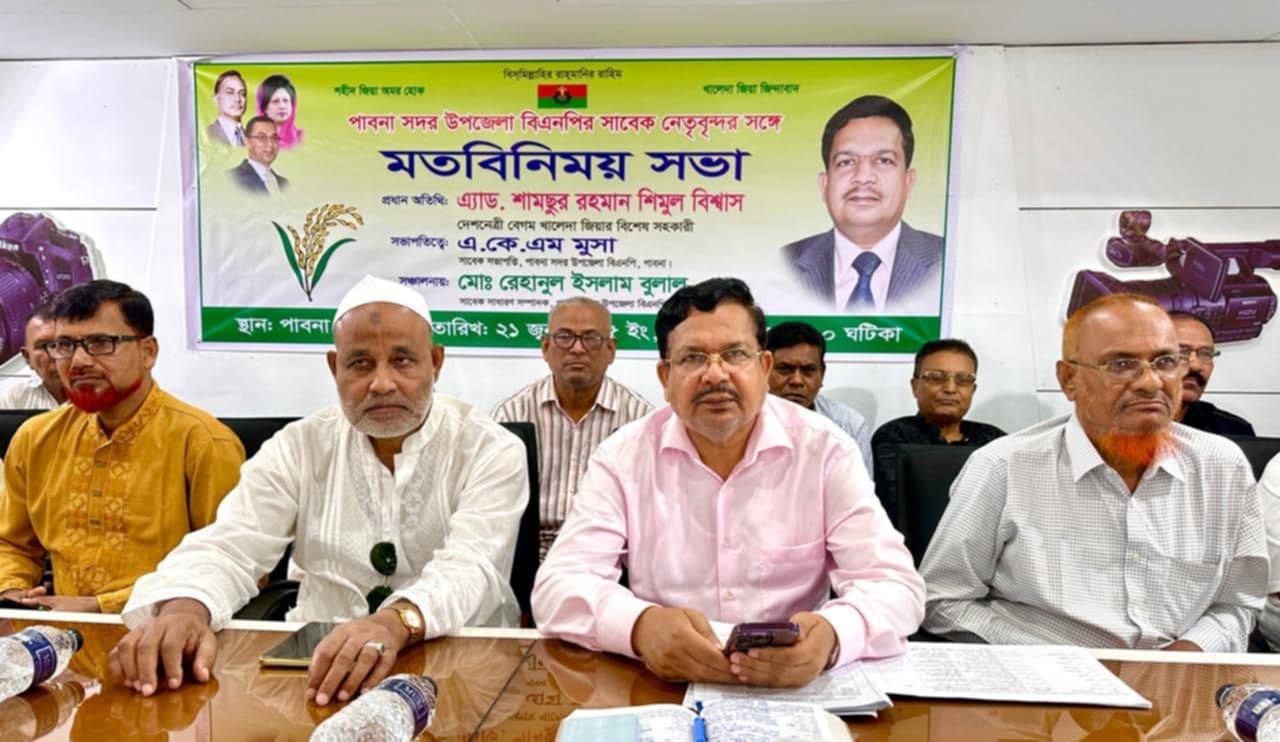 এস এম আলম, ২১ জুন: পাবনা সদর উপজেলার জাতীয়তাবাদী দলের সাবেক নেতৃবৃন্দের সঙ্গে মতবিনিময় সভা অনুষ্ঠিত হয়েছে। সকালে পাবনা প্রেসক্লাবের ভিআইপি অডিটোরিয়ামে সদর উপজেলার জাতীয়তাবাদী দলের সাবেক নেতৃবৃন্দের সঙ্গে মতবিনিময় সভা অনুষ্ঠিত হয়। এ সময় প্রধান অতিথি হিসেবে উপস্থিত ছিলেন সাবেক প্রধানমন্ত্রী দেশনেত্রী বেগম খালেদা জিয়ার বিশেষ সহকারী ও বিশিষ্ট শ্রমিক নেতা এ্যাডভোকেট শামসুর রহমান শিমুল বিশ্বাস। সভায় সভাপতিত্ব করেন পাবনা সদর উপজেলা জাতীয়তাবাদী দলের সাবেক সভাপতি এ কে এম মুসা। সঞ্চালনা করেন সদর উপজেলা জাতীয়তাবাদী দলের সাবেক সাধারণ সম্পাদক রেহানুল ইসলাম বুলাল। আরো উপস্থিত ছিলেন সদর উপজেলার সকল ইউনিয়নের বিএনপি ও অঙ্গ সংগঠনের নেতৃবৃন্দ ও কর্মীগণ।