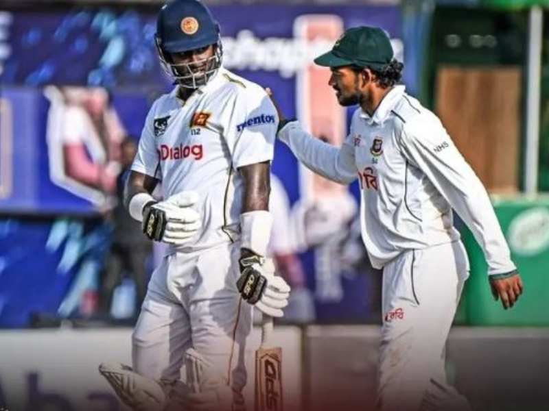 দ্বিতীয় ইনিংসে ব্যাট করতে নেমে প্রথম ইনিংসে ১৮৭ রান করা পাথুম নিশাঙ্কা করেন সর্বোচ্চ ২৪ রান। তার উইকেটটাই নেন নাইম। আরেক ওপেনার লাহিরু উদারা ১৩ বলে ৯ রান করে আউট হন। দিনেশ চান্ডিমাল করেন ৬ রান। ক্যারিয়ারের শেষ ইনিংসে ব্যাট করতে নেমে অ্যাঞ্জেলো ম্যাথিউজ হলেন তাইজুলের শিকার। করলেন ৮ রান।কামিন্দু মেন্ডিস ও অধিনায়ক ধনঞ্জয়া ডি সিলভা – দু’জনই অপরাজিত থাকেন ১২ রান করে। দুই ইনিংসে সেঞ্চুরি করে ম্যাচ সেরার পুরস্কারটা নিলেন নাজমুল হোসেন শান্ত।